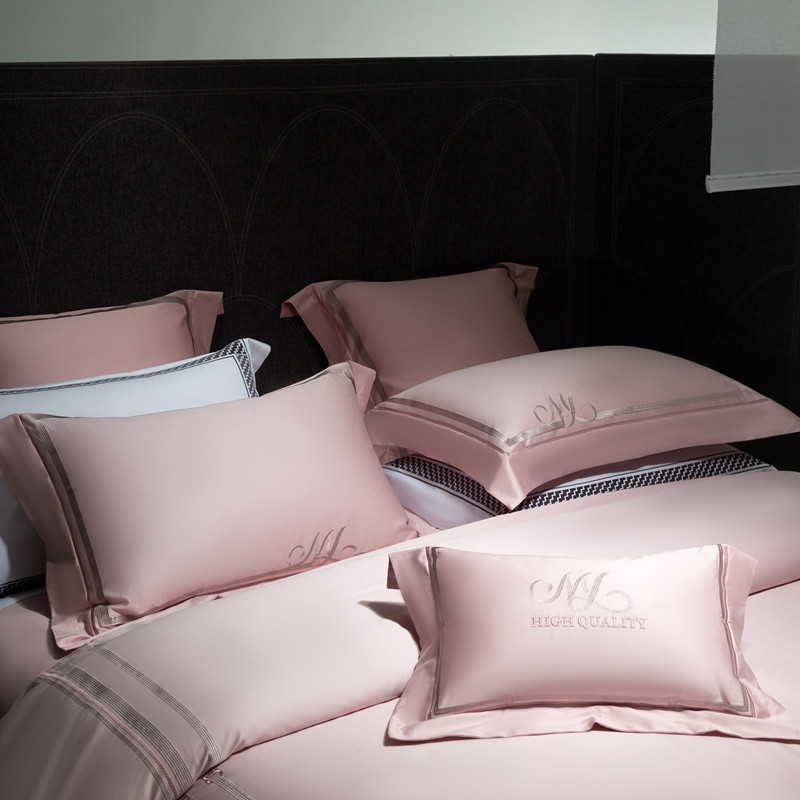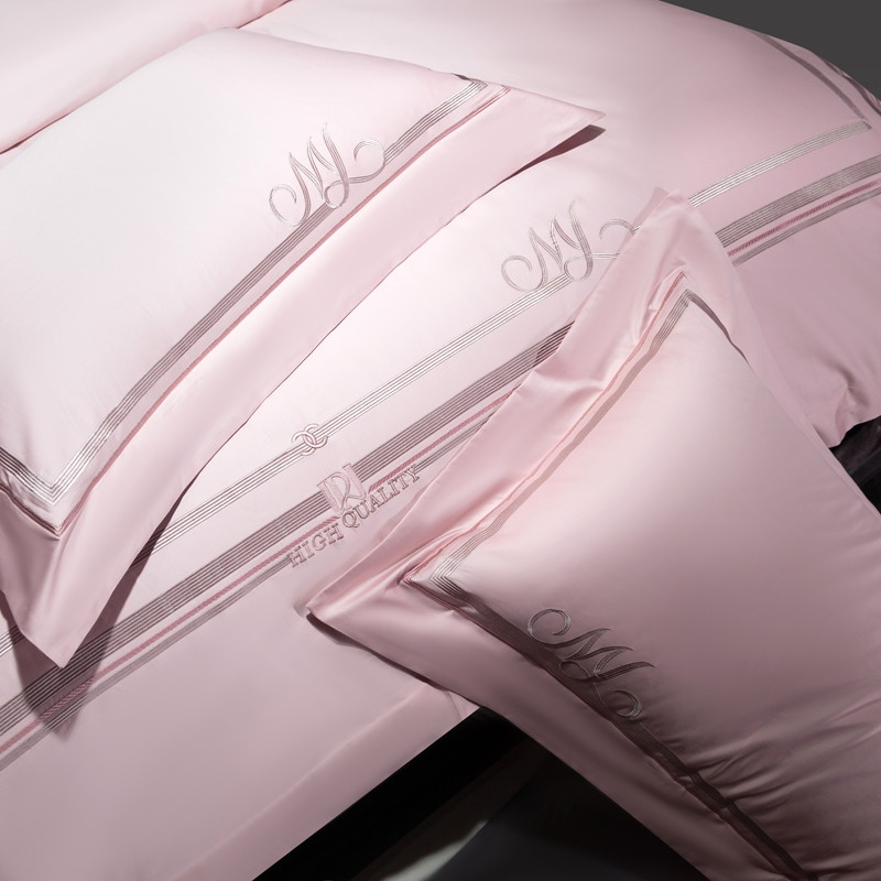 高大尚 2023新款长绒棉高端绣花四件套莉迪亚 蜜桃粉