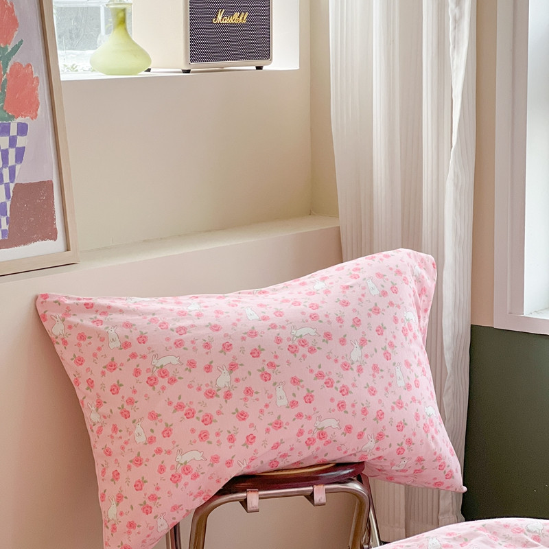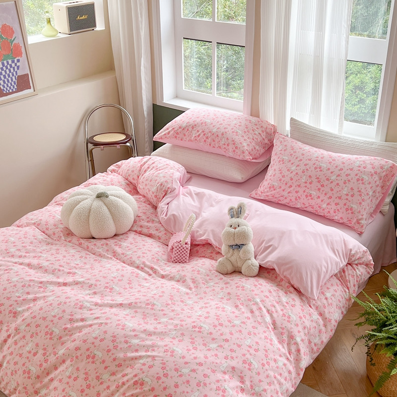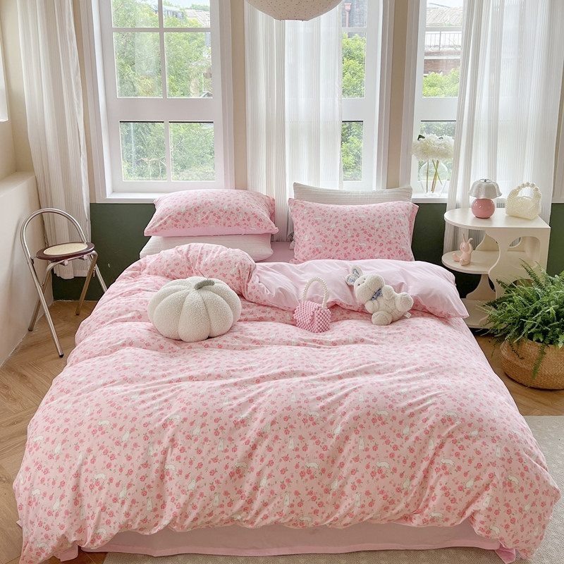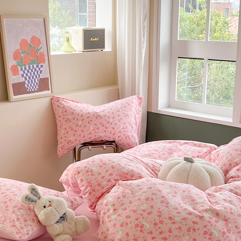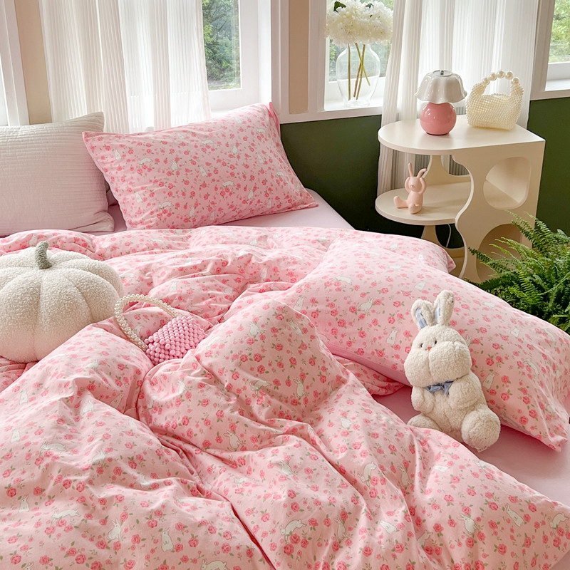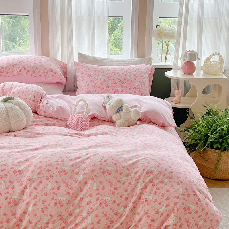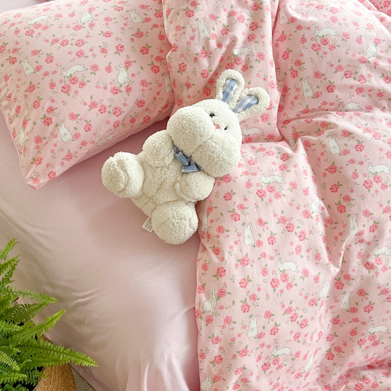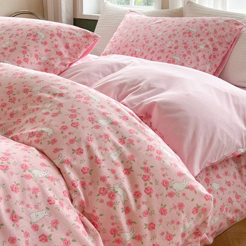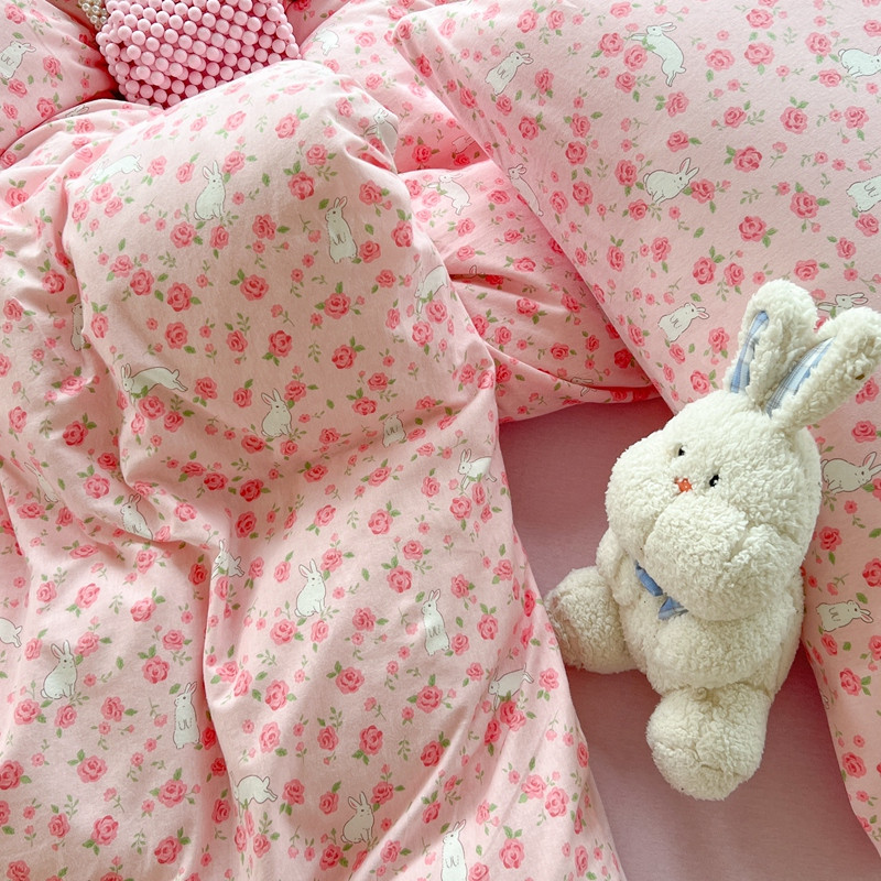 商品名称:柚子 2023新款全棉针织印花四件套 玫瑰小兔