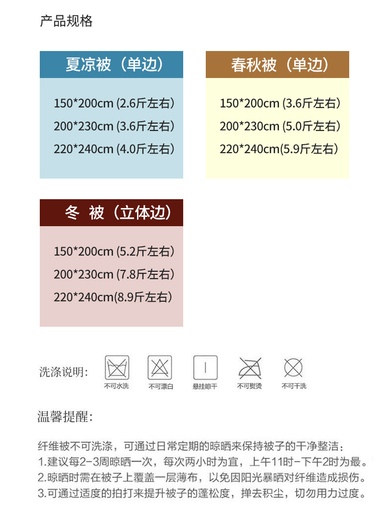 150x200cm春秋被(单边) | ¥140.00 |