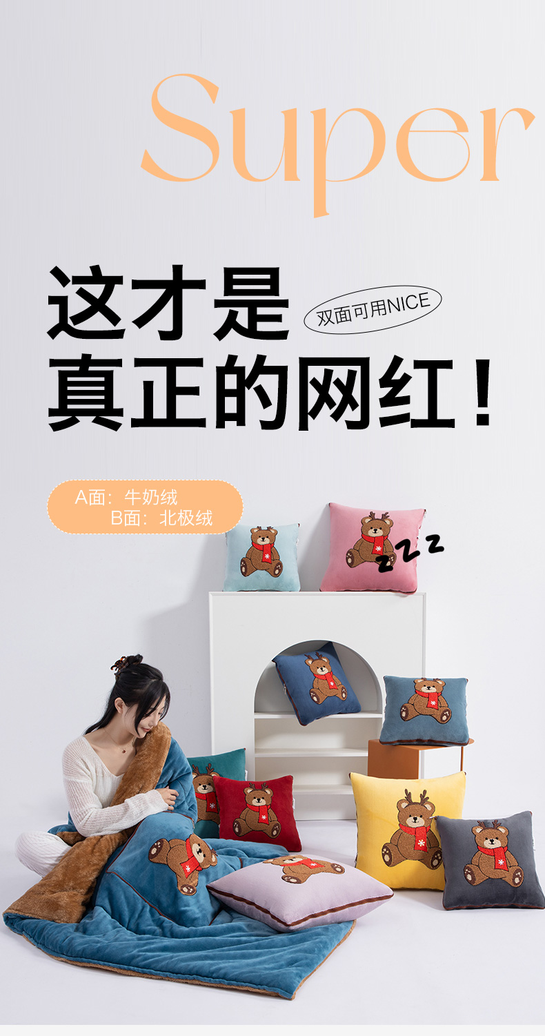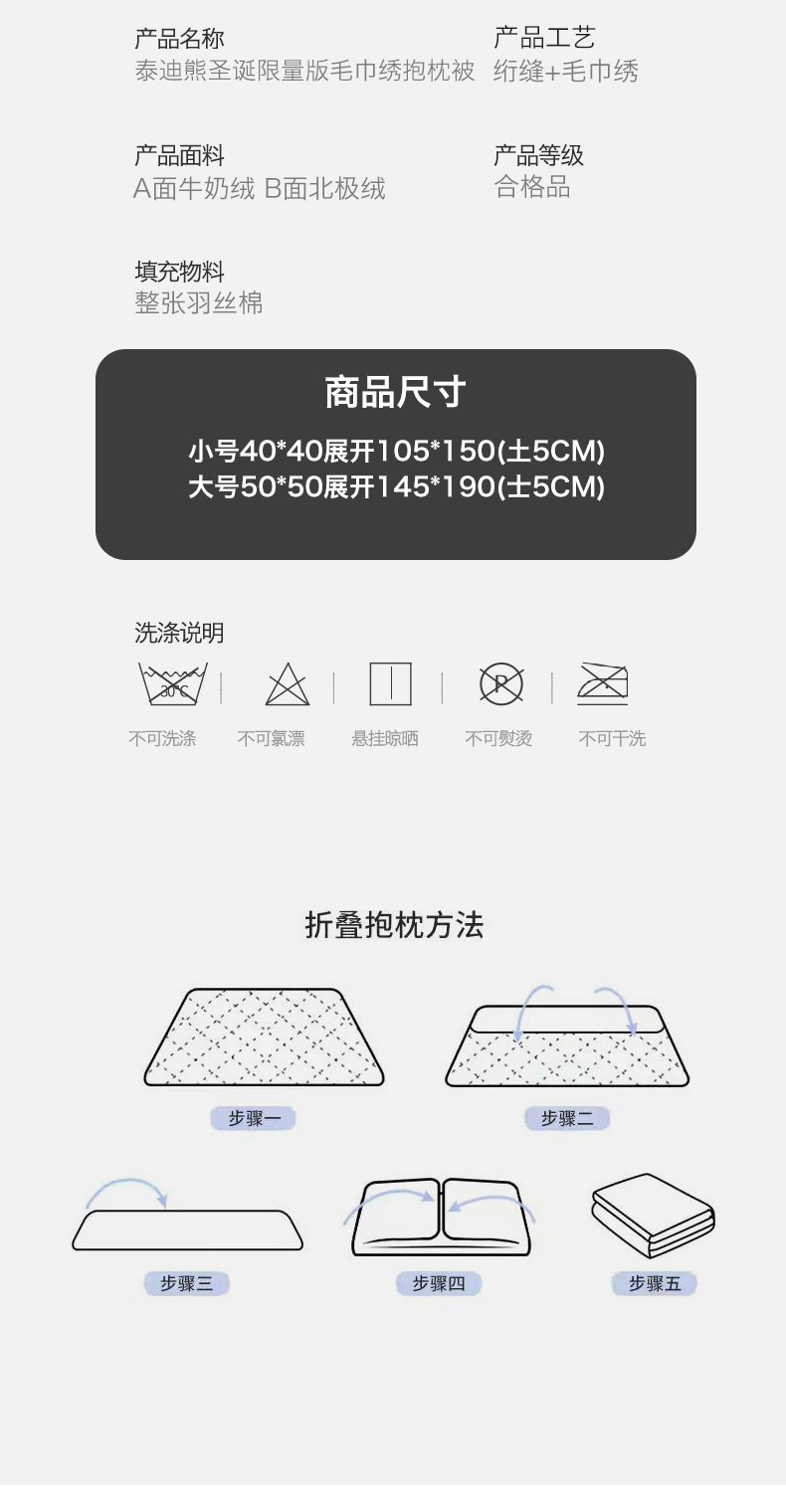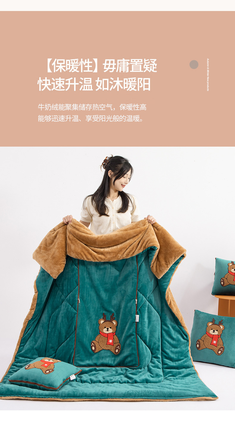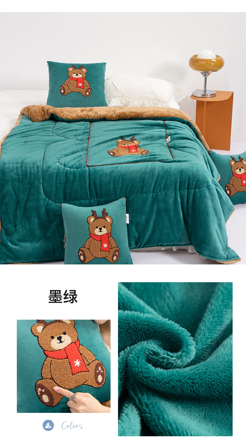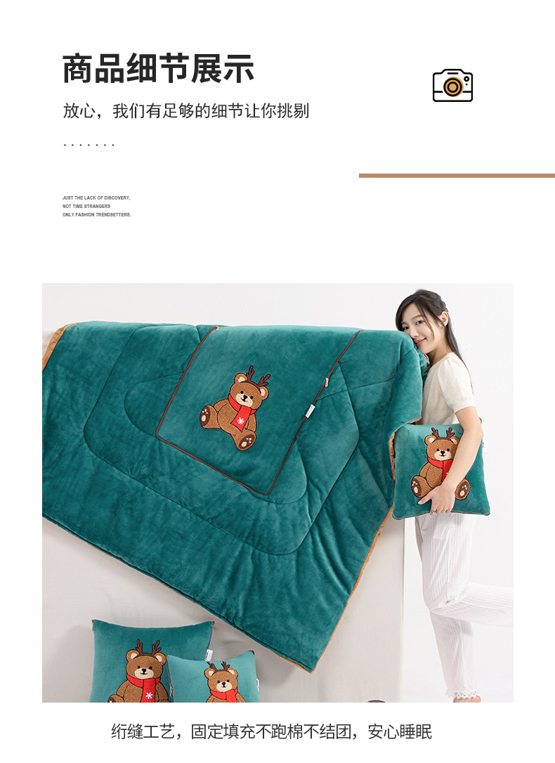 商品名称:宝马家纺2023新款泰迪熊圣诞限量版毛巾绣抱枕被 墨绿