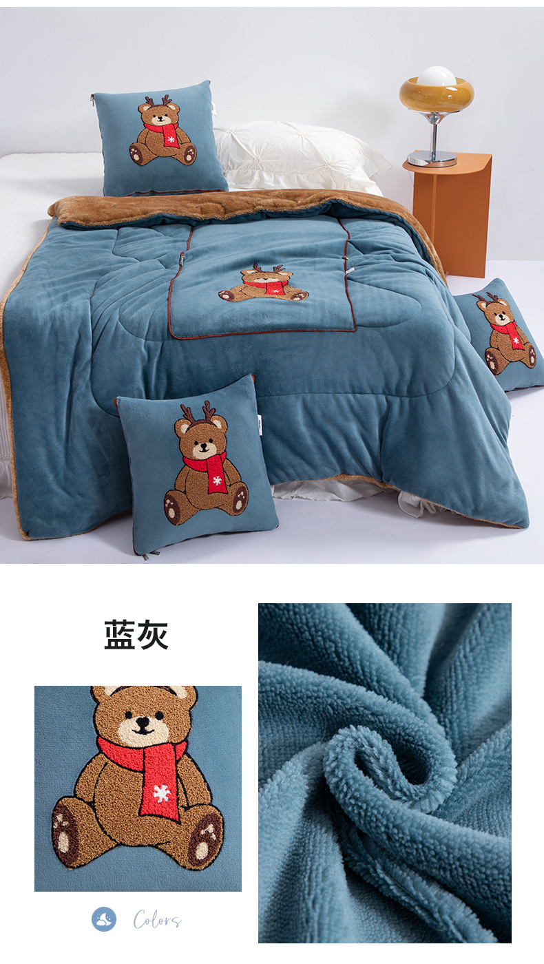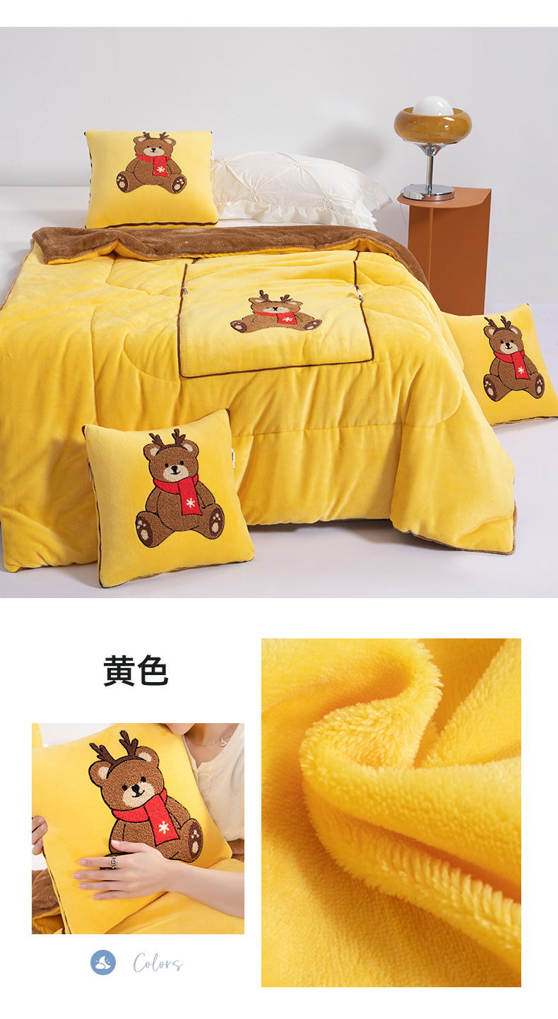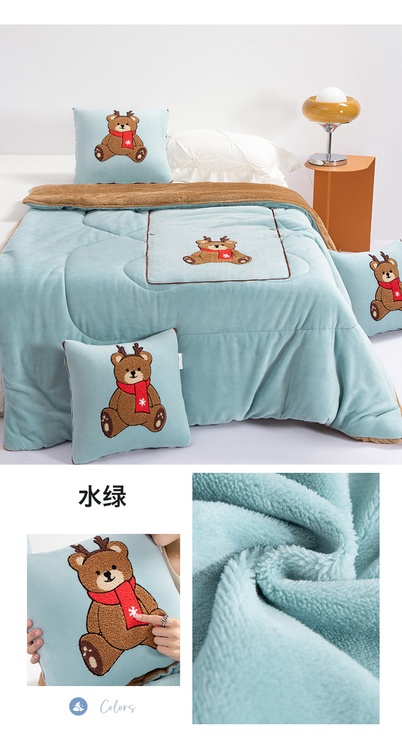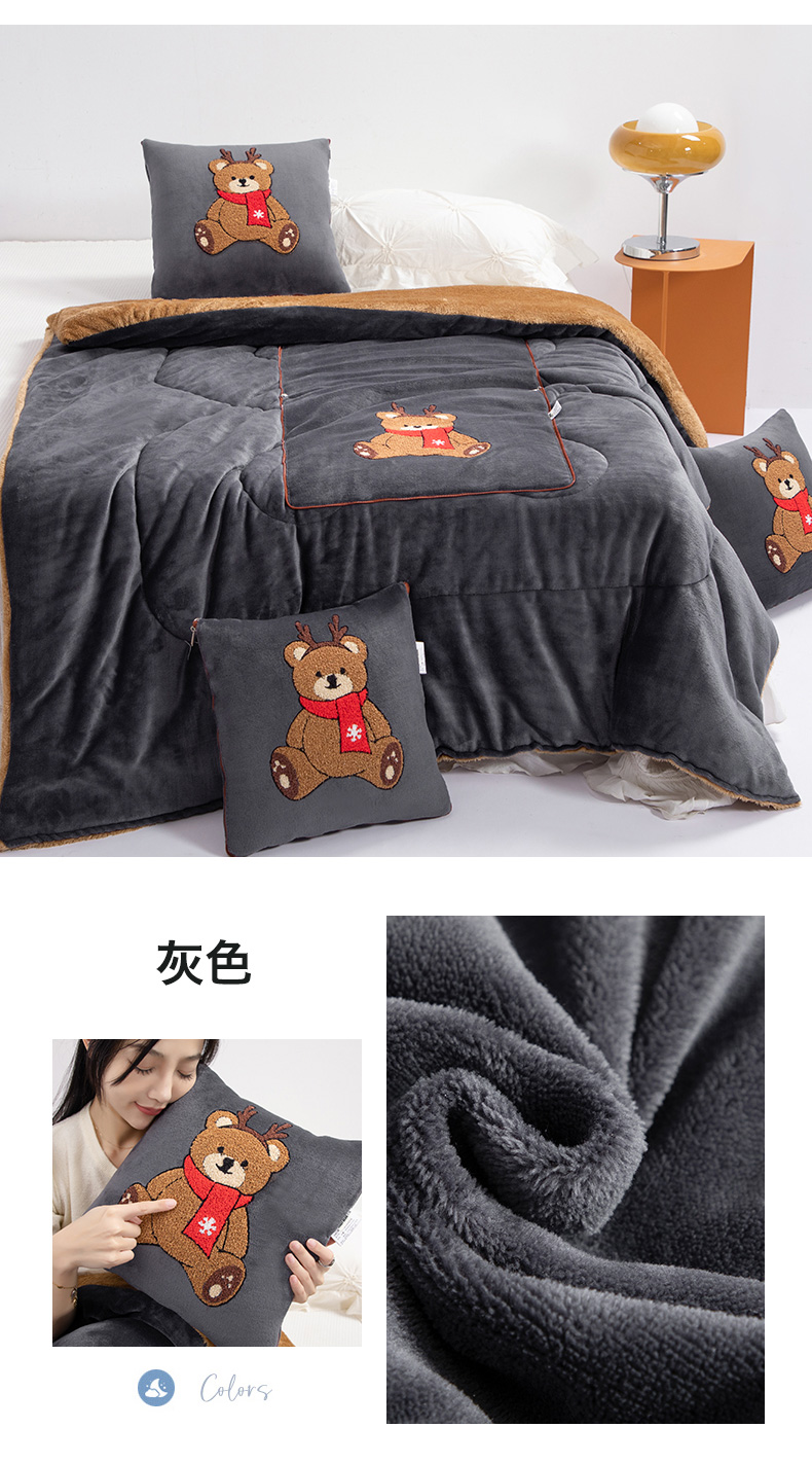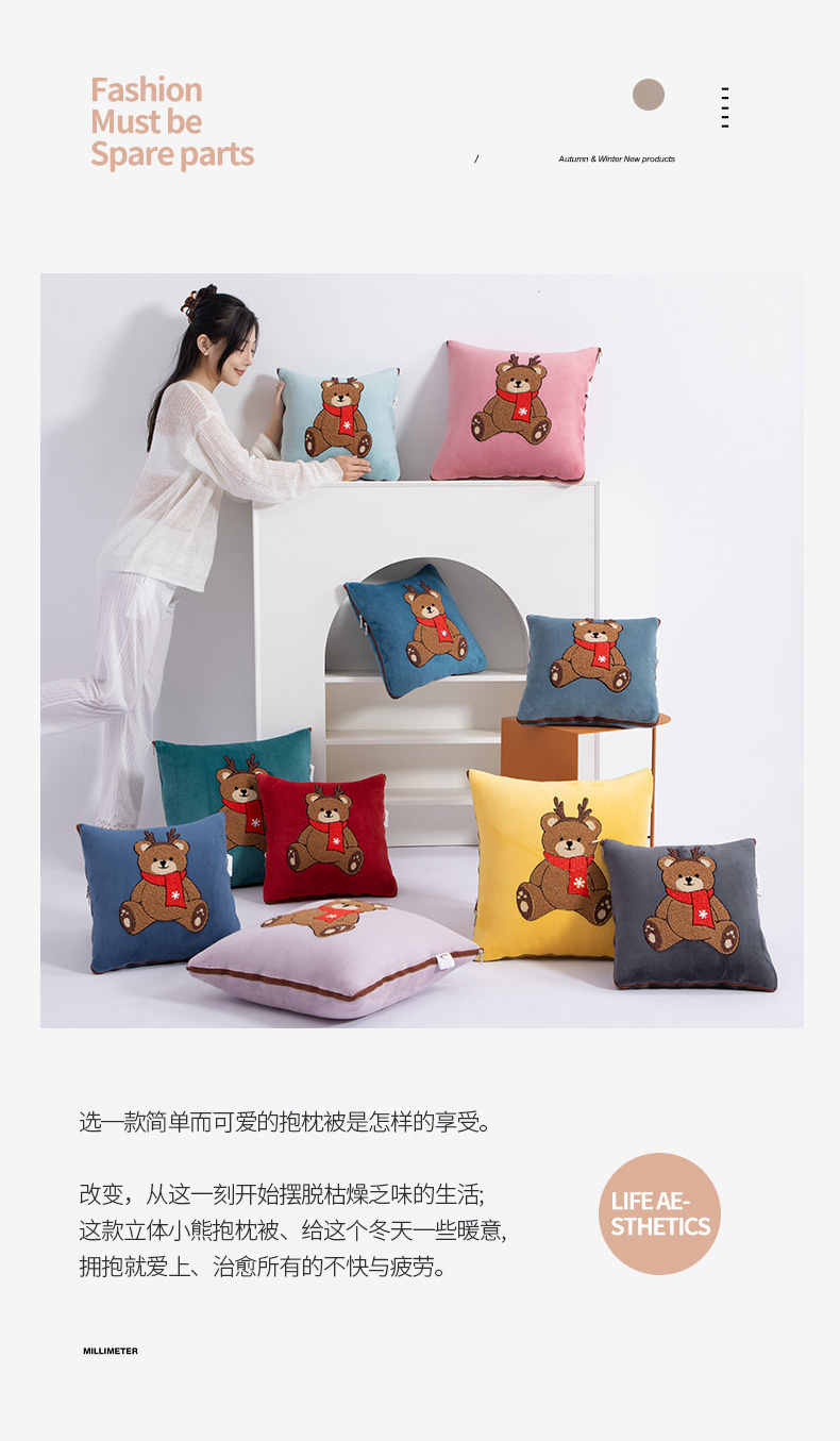 (总)宝马家纺(原梦童画) 2024新款泰迪熊毛巾绣联名款减压式加厚抱枕毯,豆沙粉,粉色,黑色,灰色,绿色,柠檬黄,天空蓝
