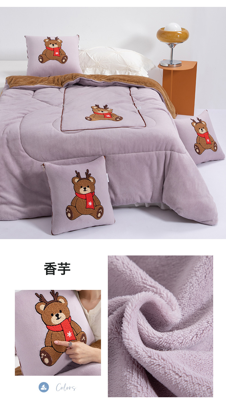(总)宝马家纺(原梦童画) 2025新款多巴胺风格牛奶绒贴布绣抱枕被,小狗-黑色,兔子-粉,雪人-紫色,眼镜熊-绿,组合