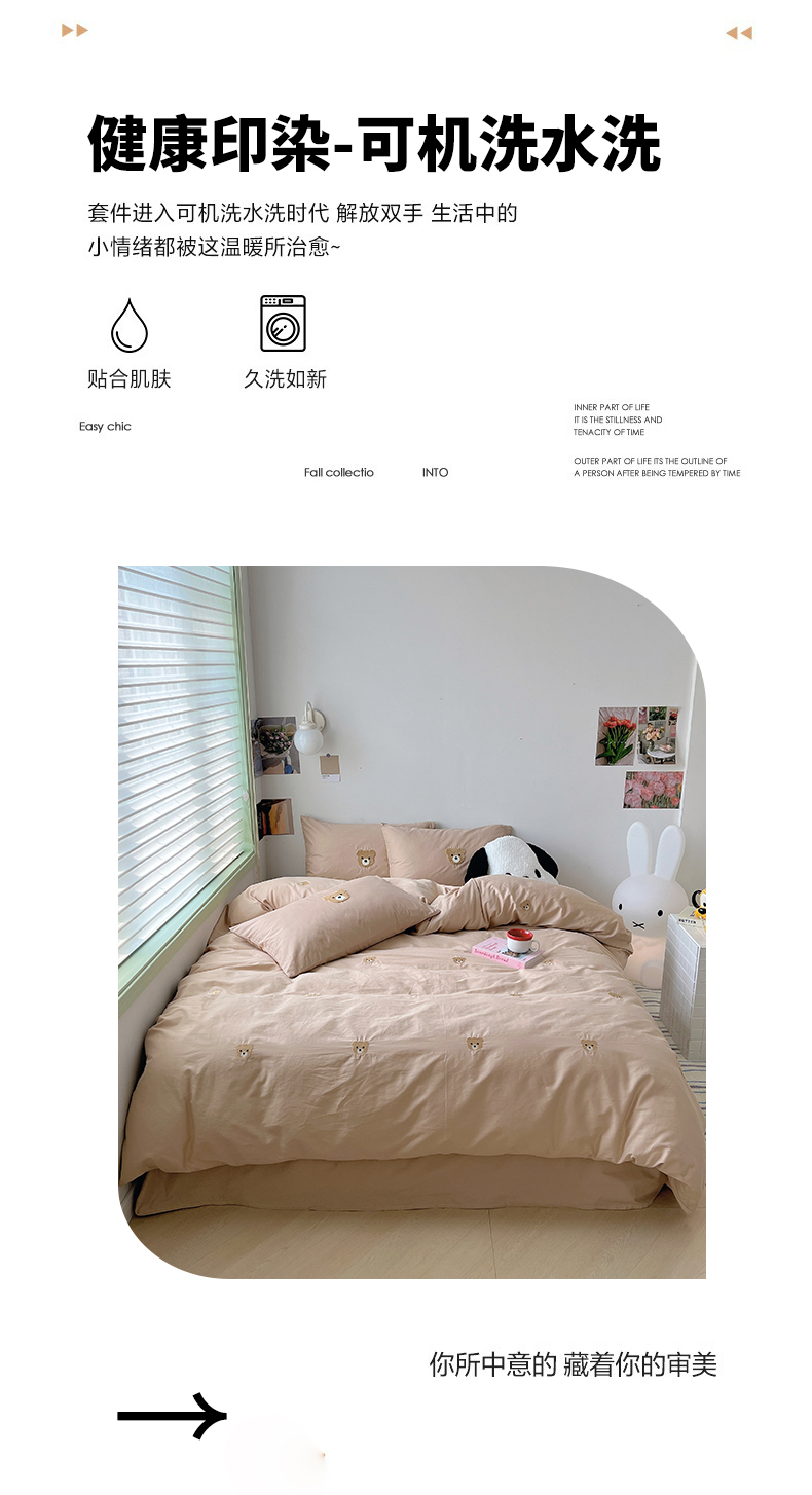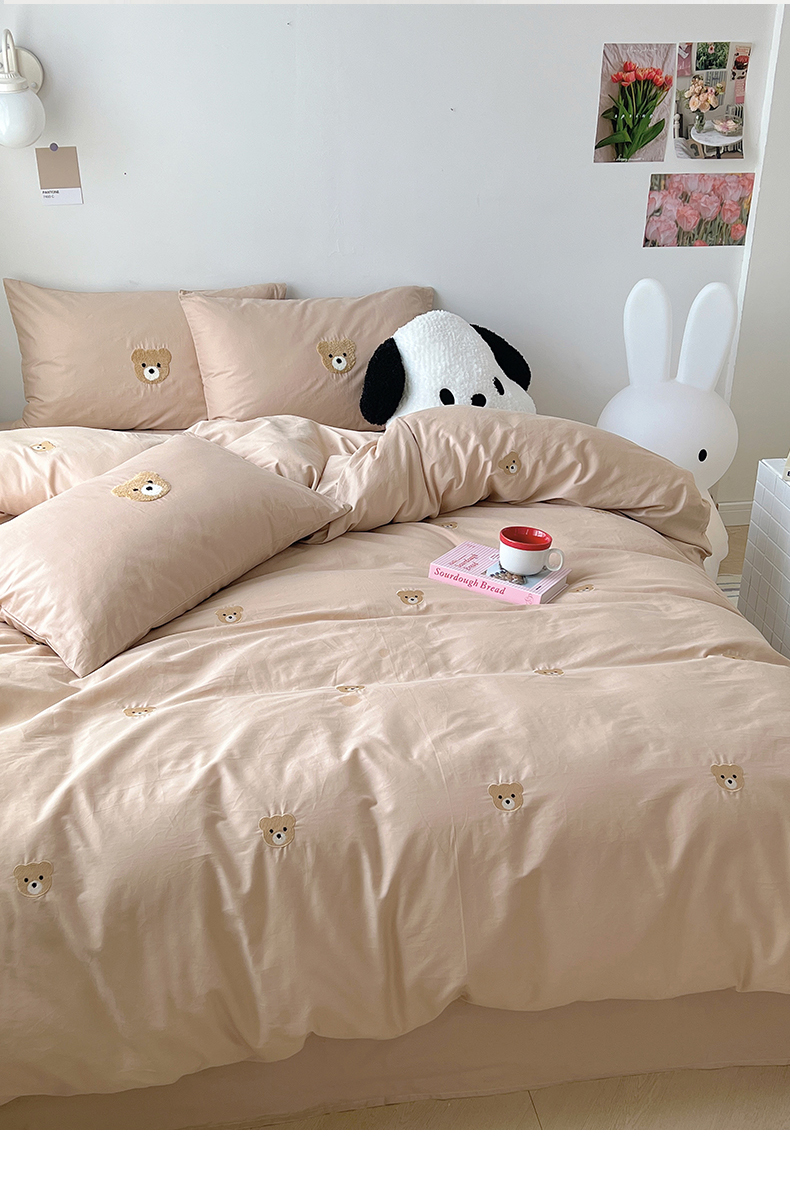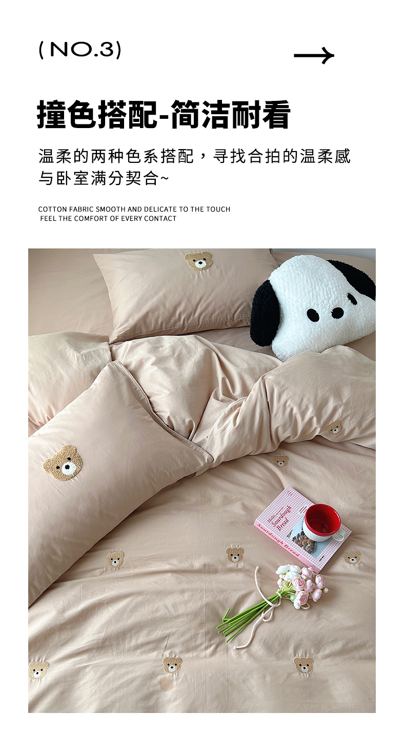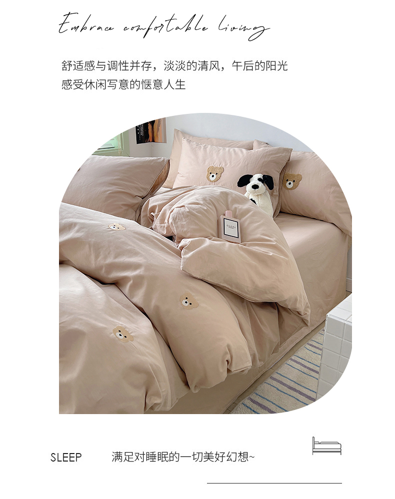 商品名称:漫调 2023新款40s喷气全棉小熊刺绣四件套 基础款小熊奶咖