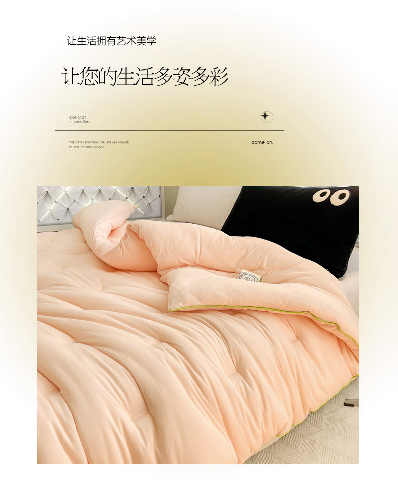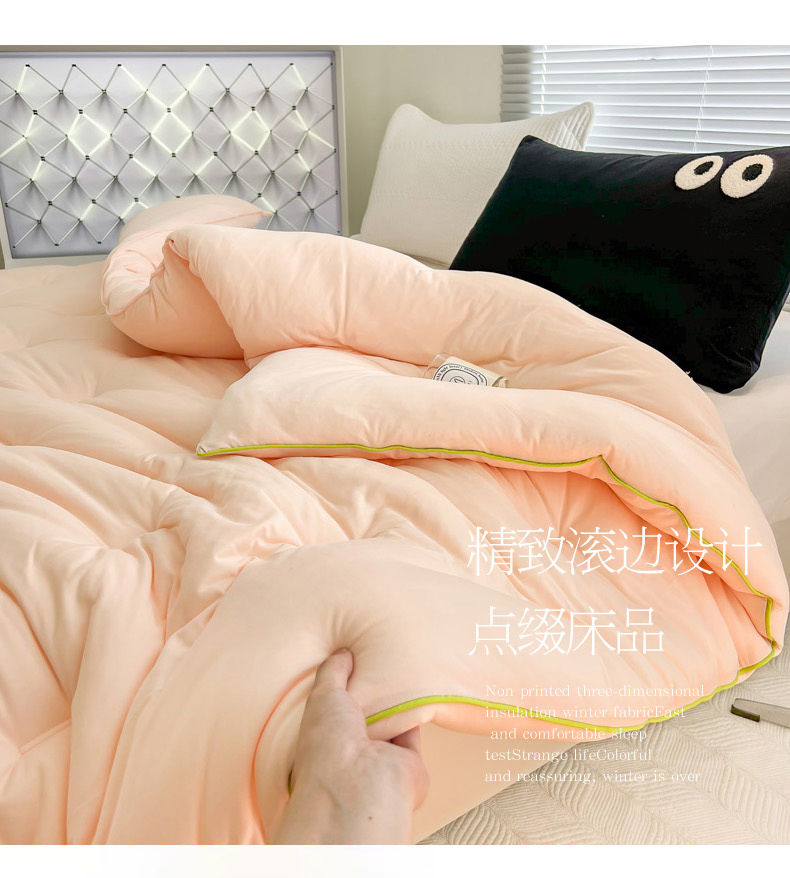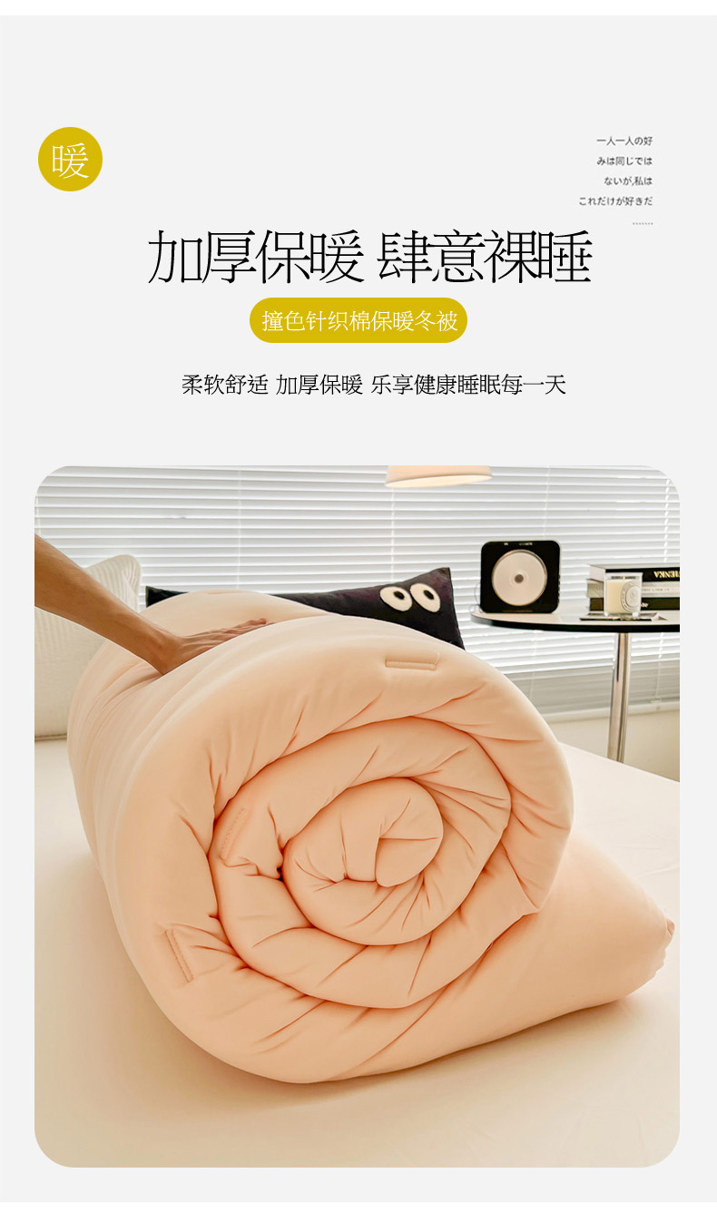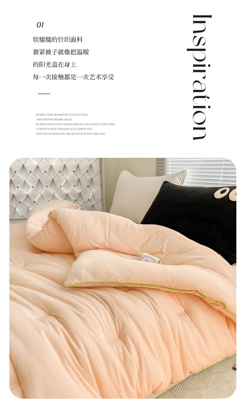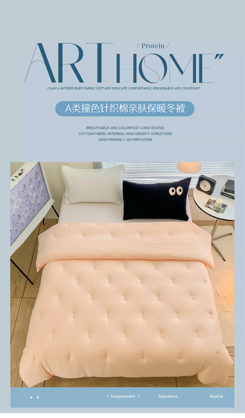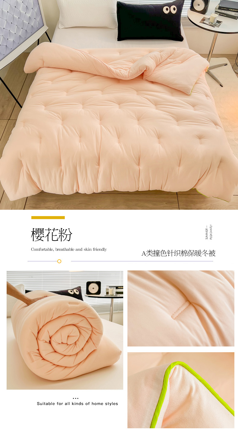 • 91家纺网 家纺一手货源 找家纺 寐居 2023新款A类撞色针织棉冬被 樱花粉