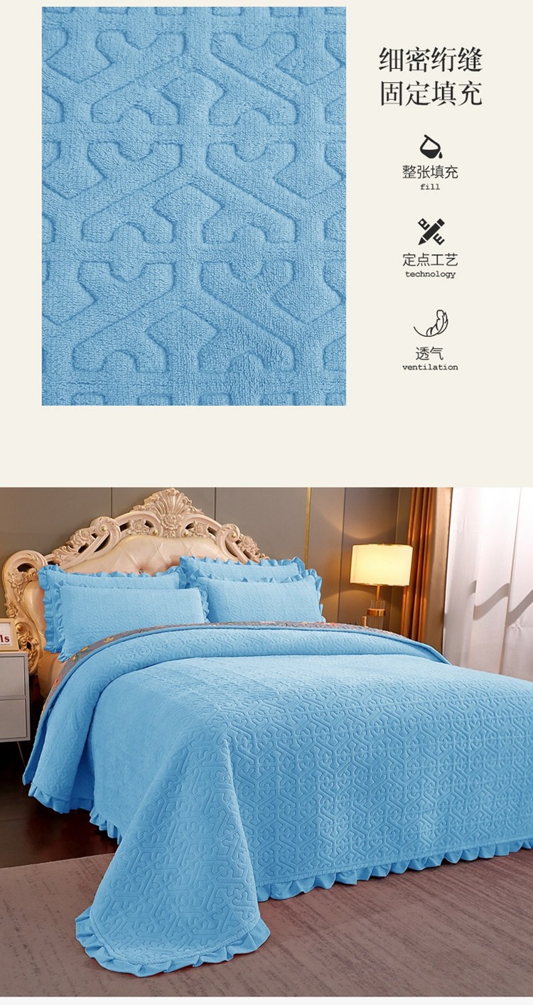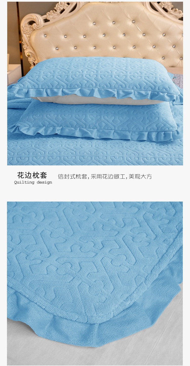 • 91家纺网 家纺一手货源 找家纺 2023新款纯色小花边牛奶绒床盖三件套 暖馨-天蓝