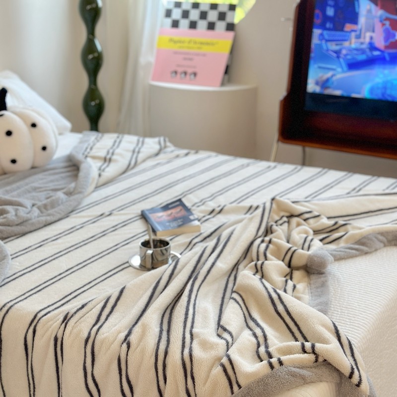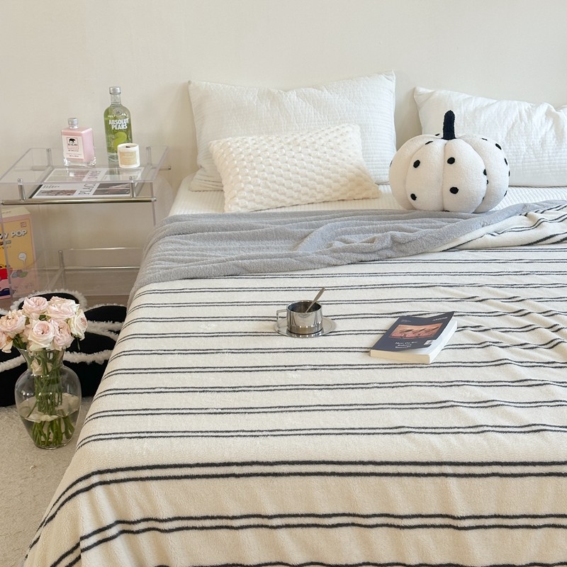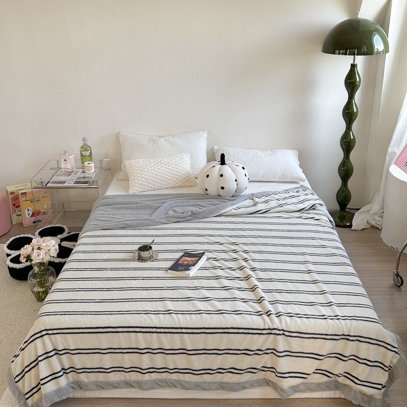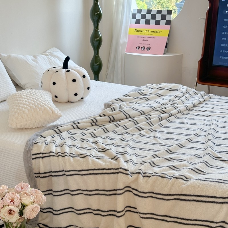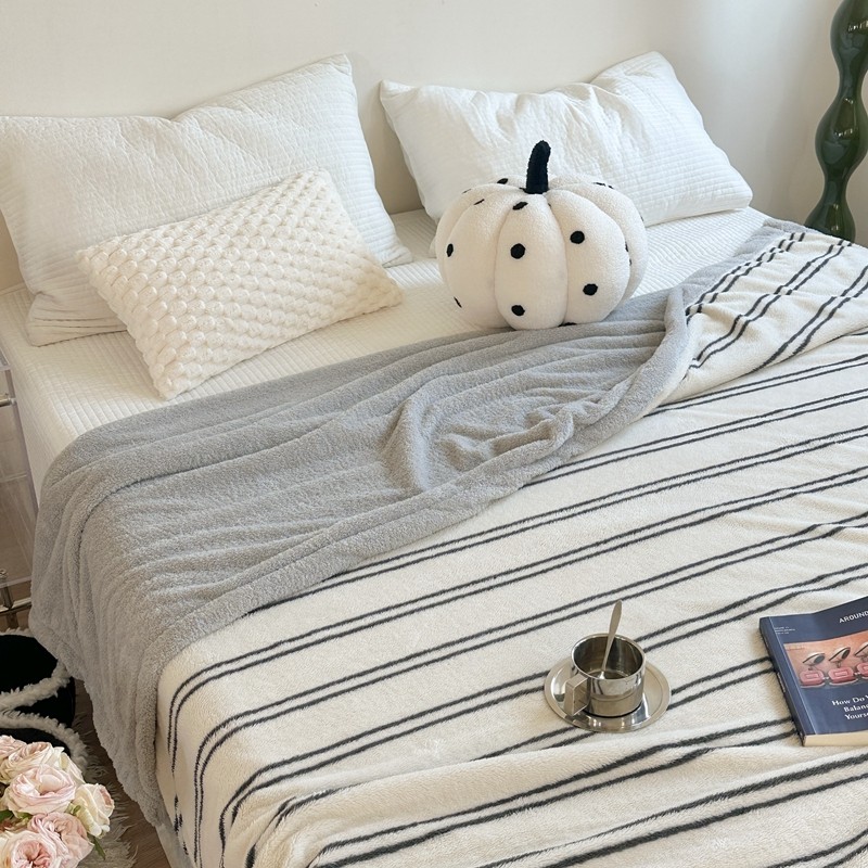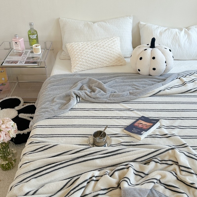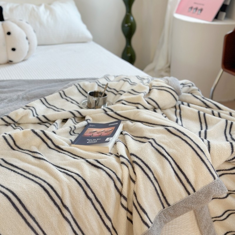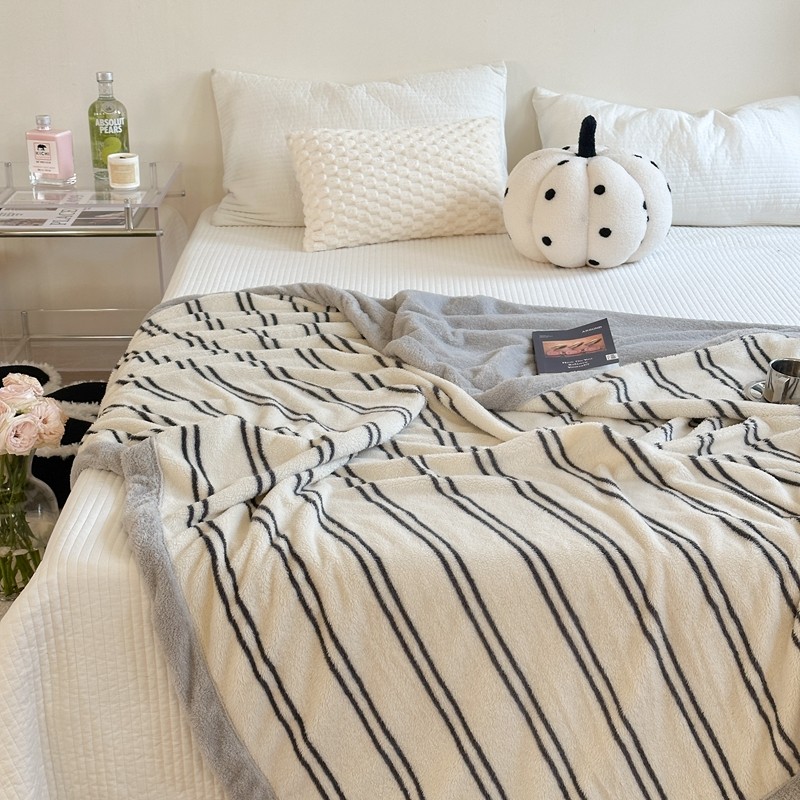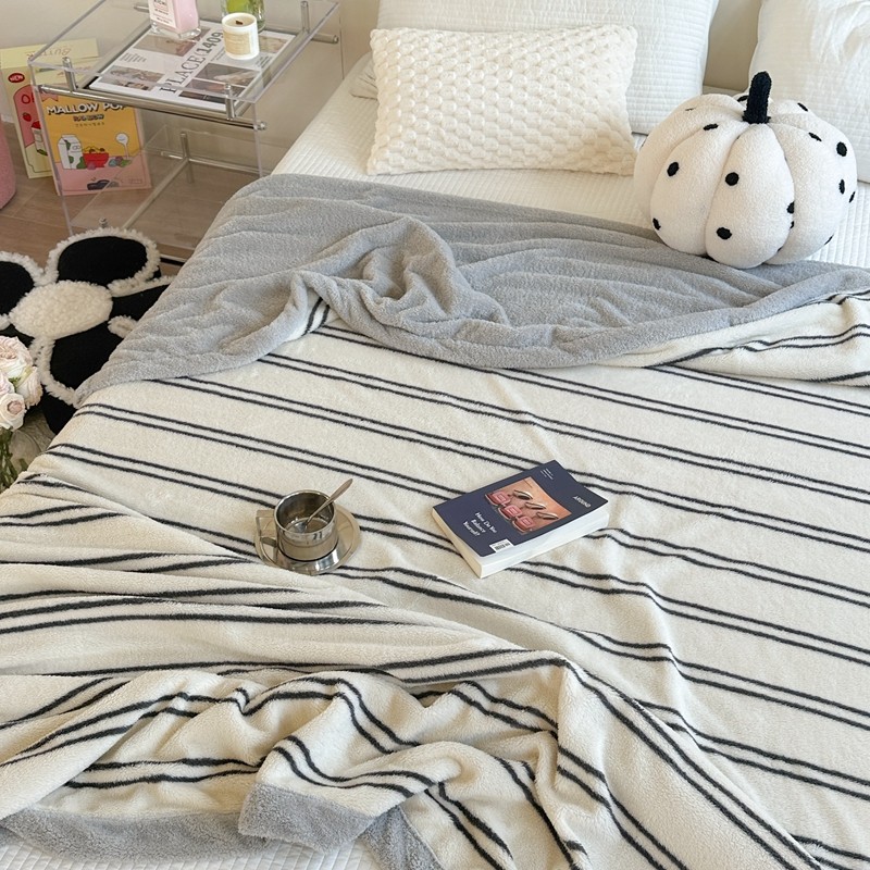 商品名称:柚子-2023新款舒棉绒+泰迪绒双面绒毯 黑白条纹