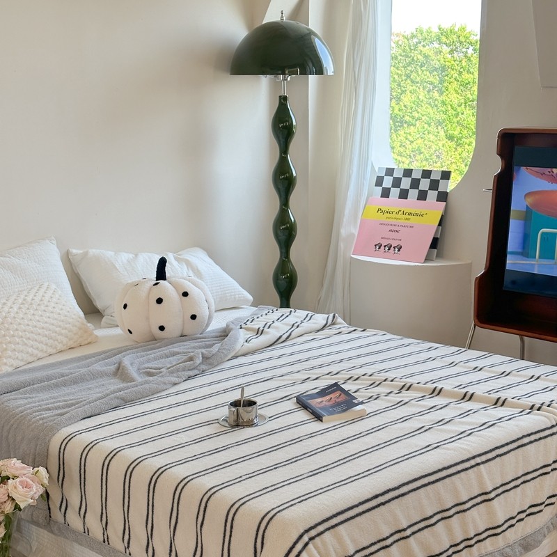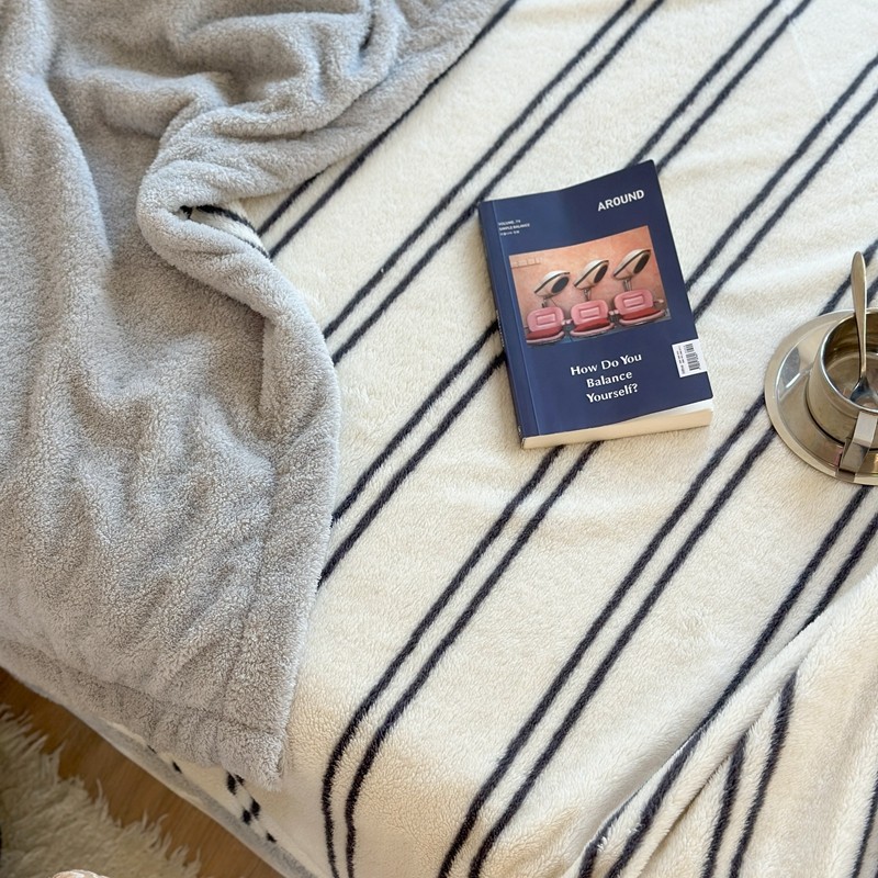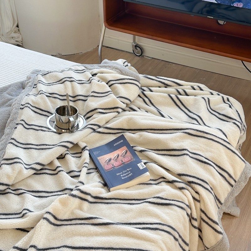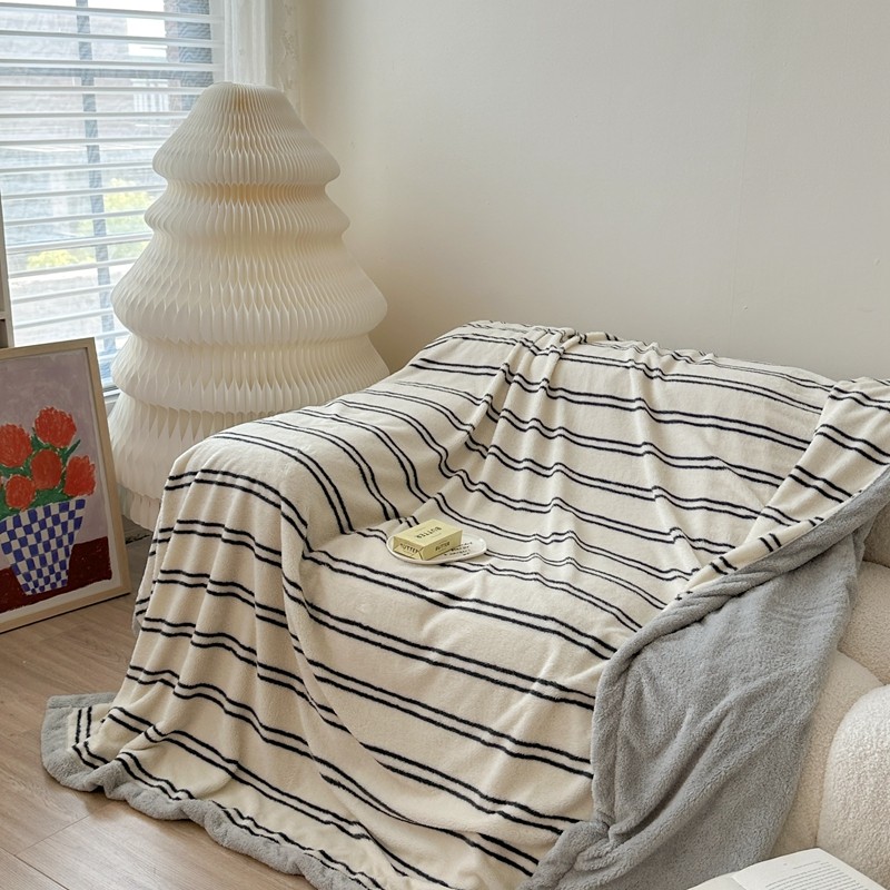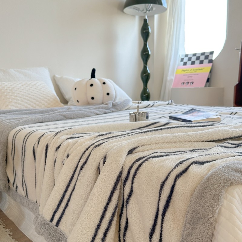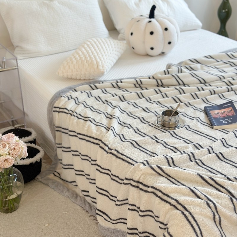 柚子-2023新款舒棉绒+泰迪绒双面绒毯 黑白条纹