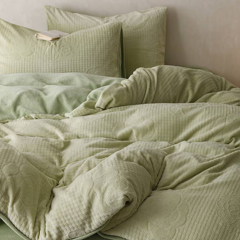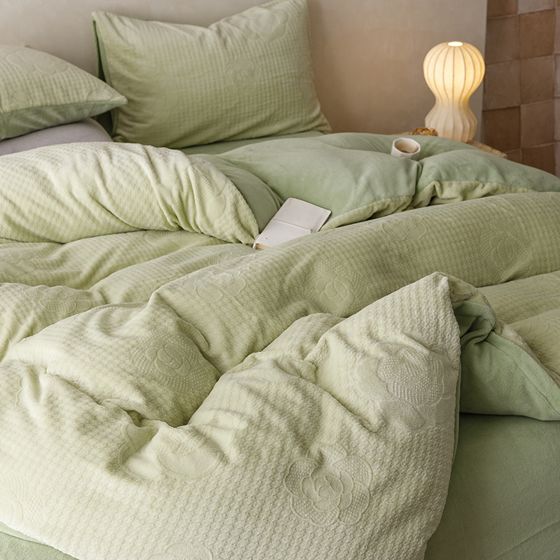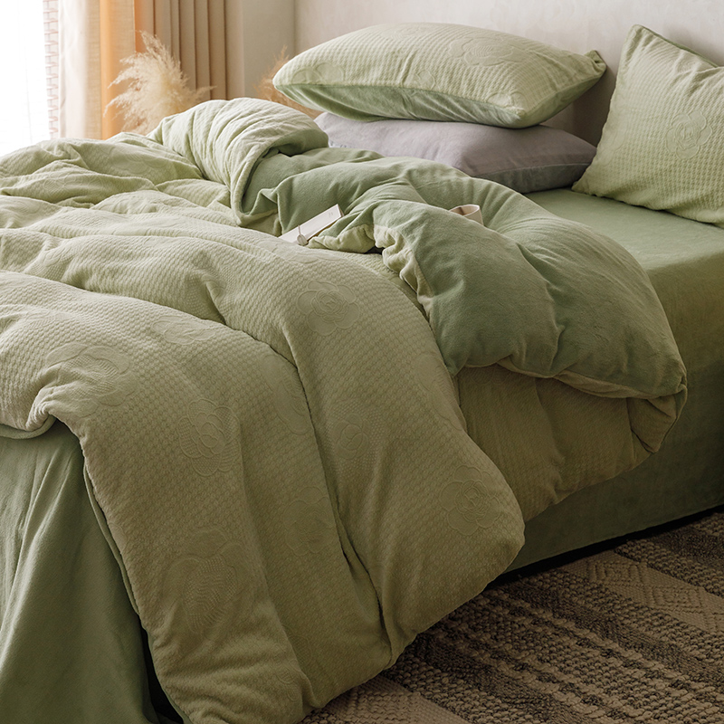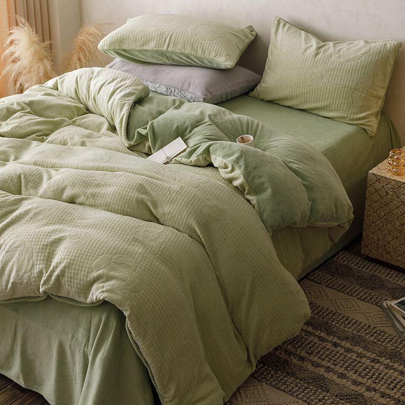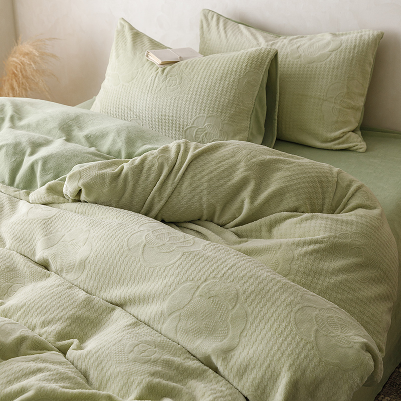 珺柔家纺 2023新款高克重雕花牛奶绒四件套 浪漫花艺