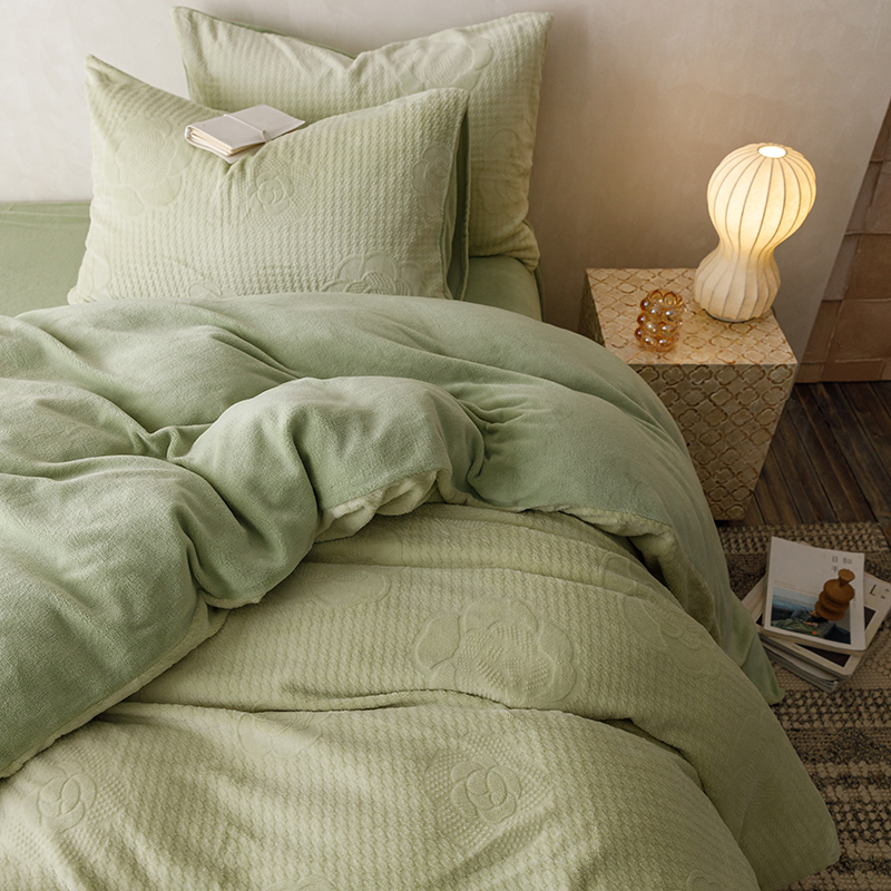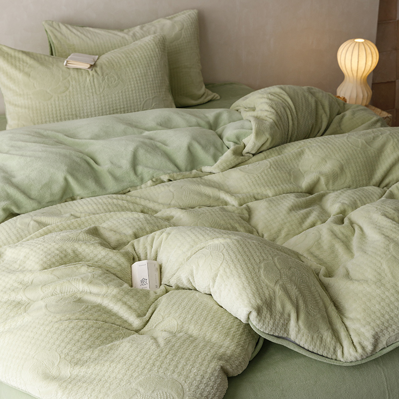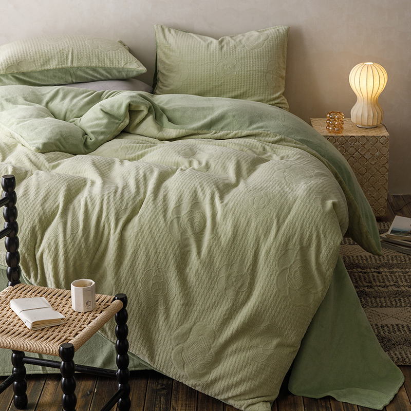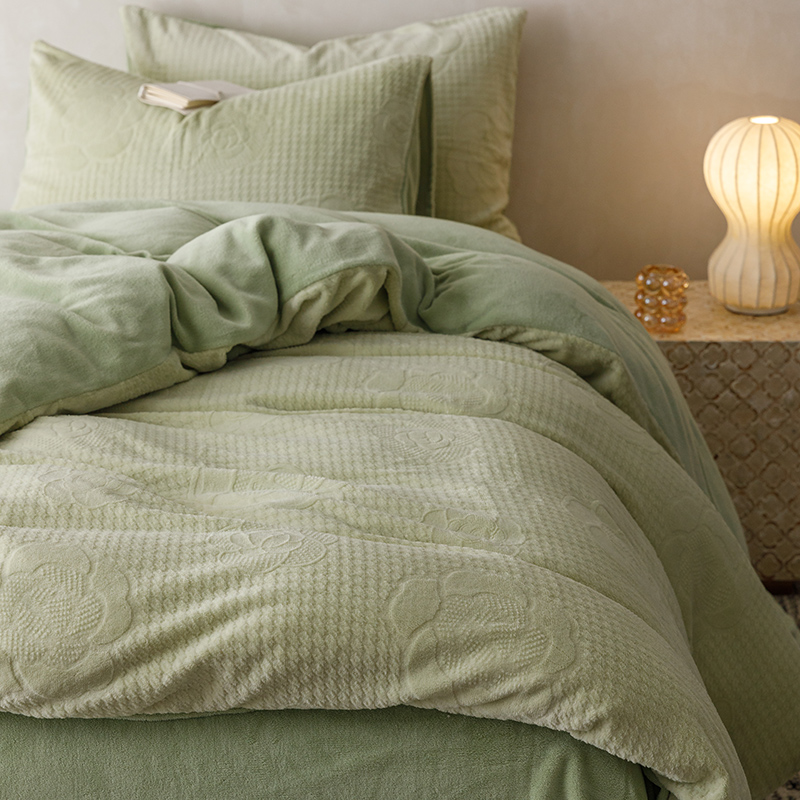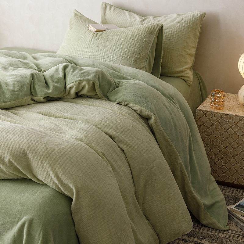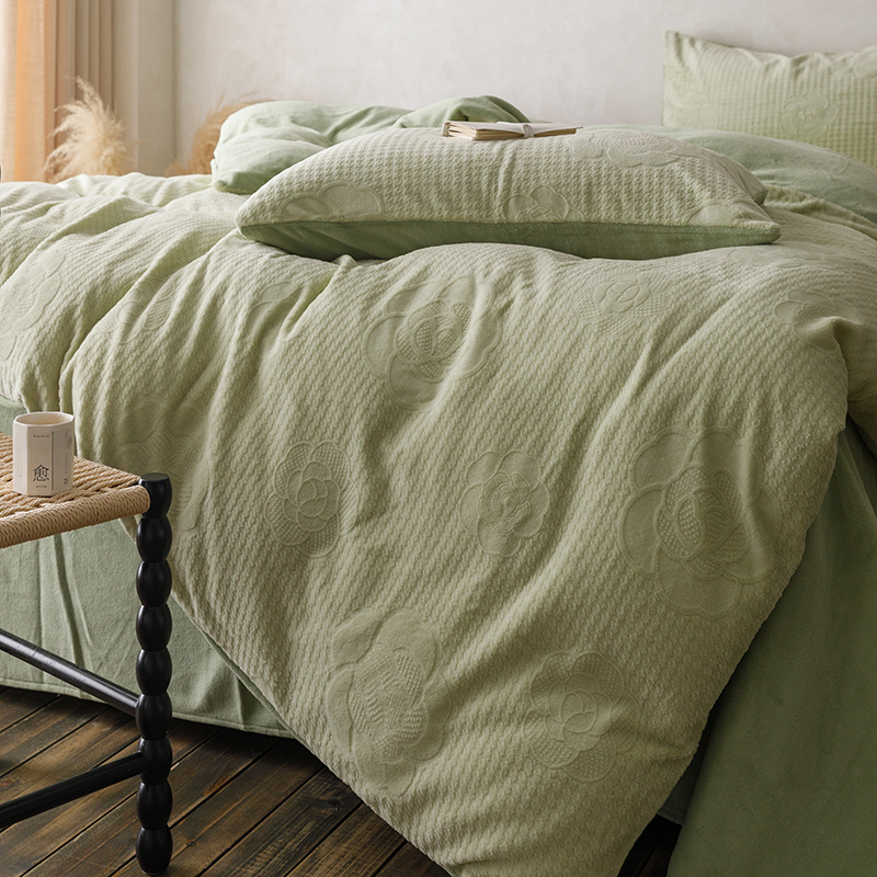 珺柔家纺 2023新款高克重雕花牛奶绒四件套 浪漫花艺