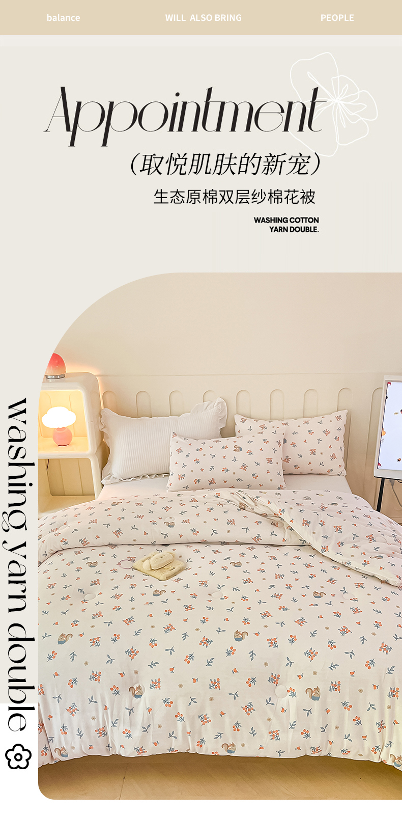 • 91家纺网 家纺一手货源 找家纺 大彩 生态原棉双层纱棉花被 花丛间