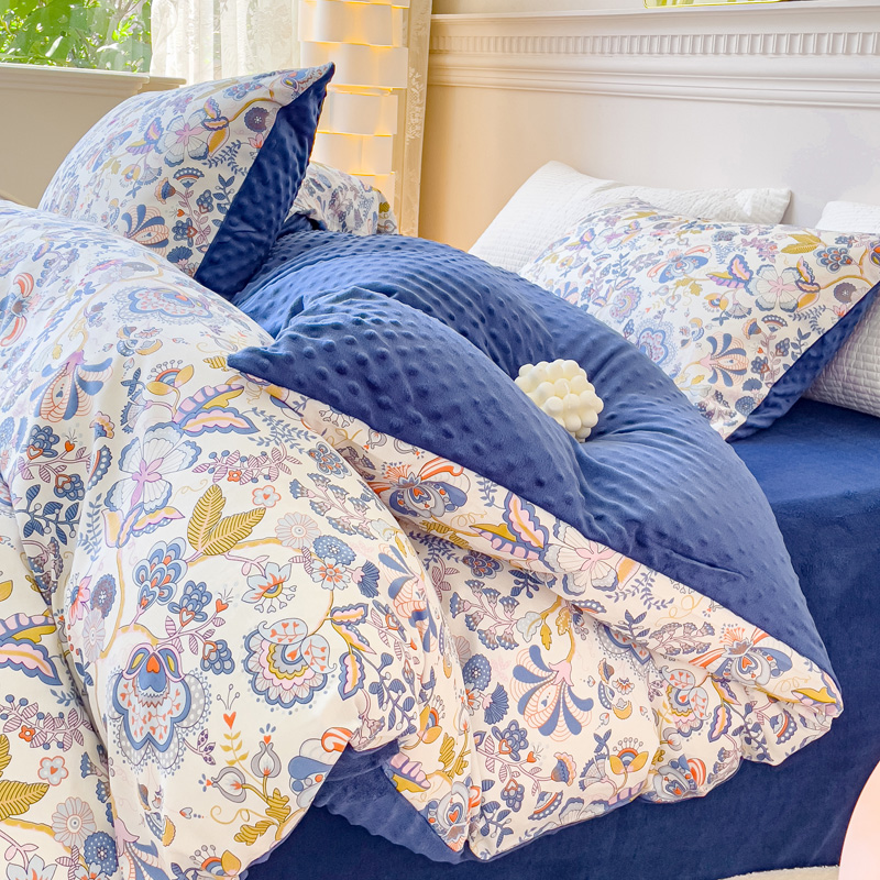 珺柔家纺 2023新款全棉加豆豆牛奶绒四件套 莫妮卡