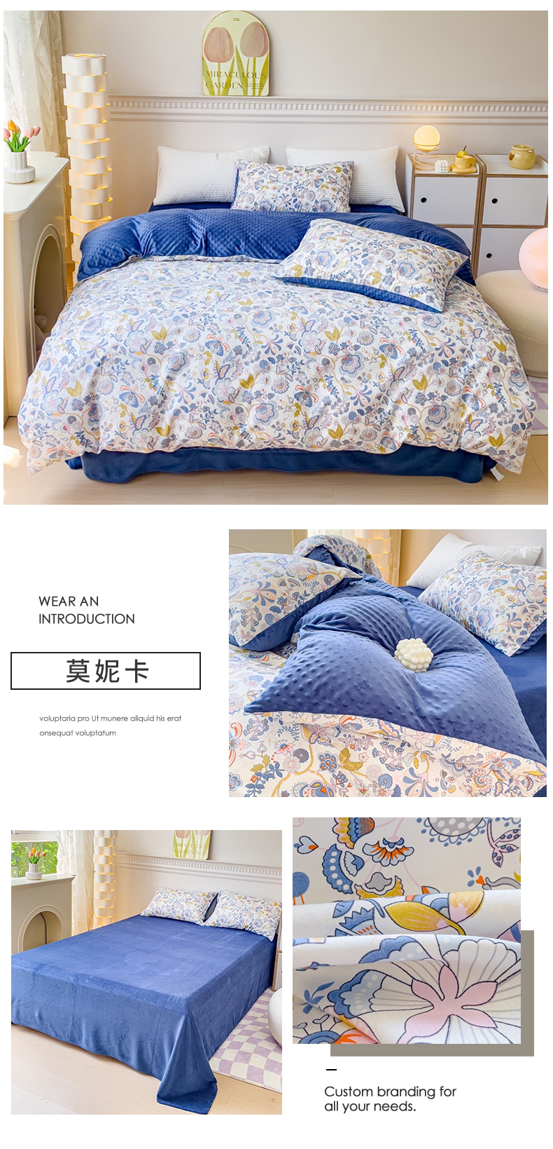 商品名称:珺柔家纺 2023新款全棉加豆豆牛奶绒四件套 莫妮卡