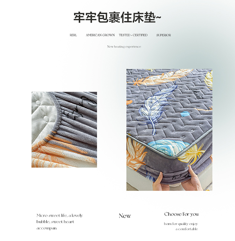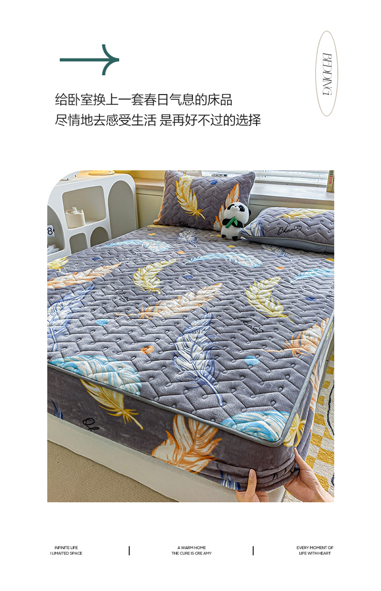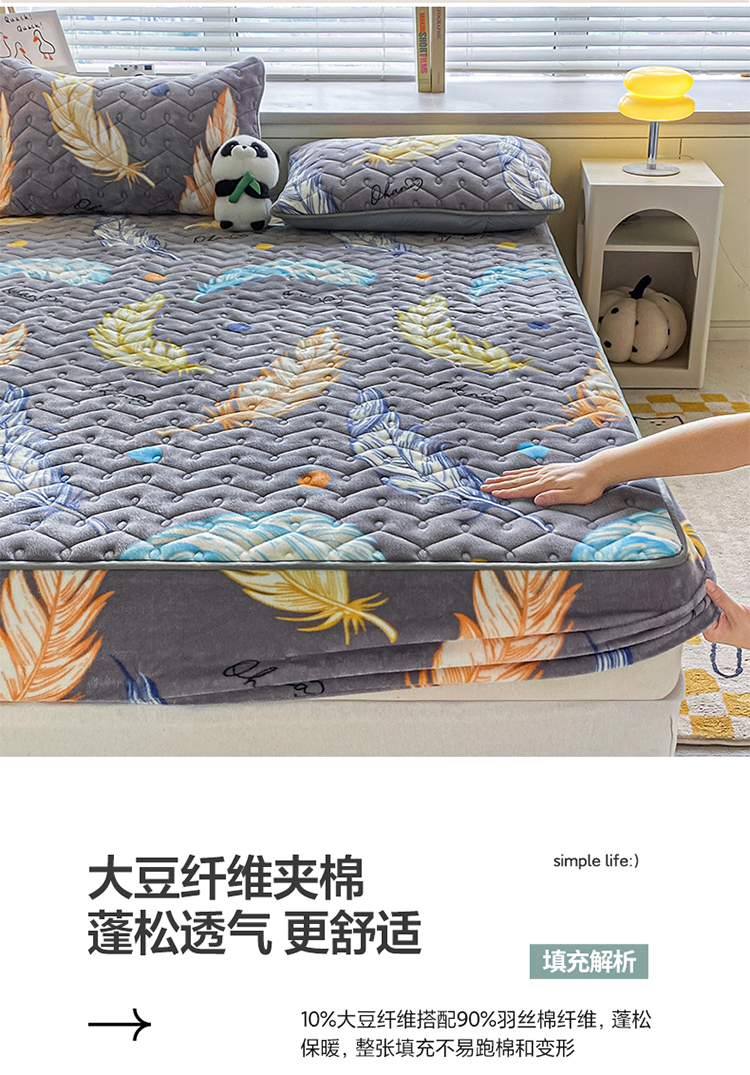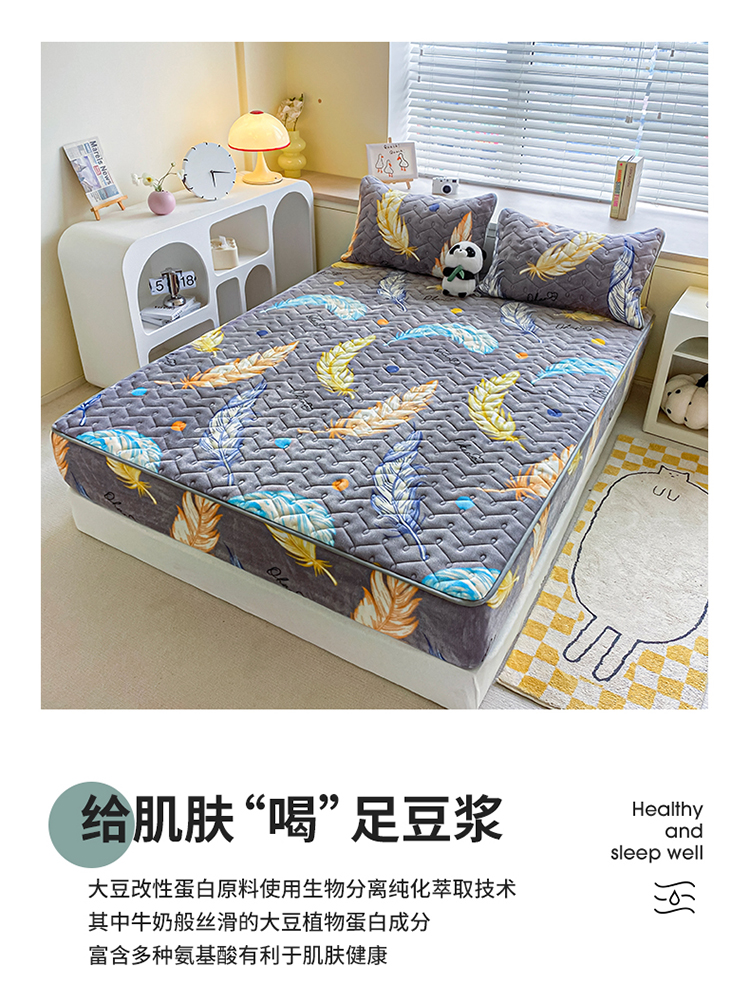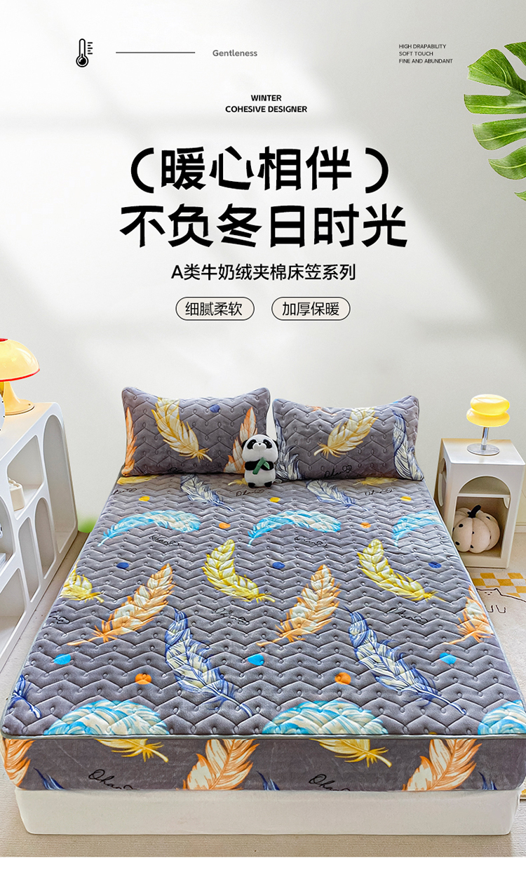 商品名称:卡伦家纺 2025新款A类牛奶绒大豆纤维抗菌夹棉床笠 轻羽飞扬
