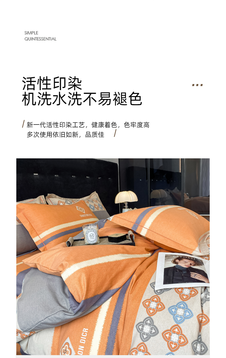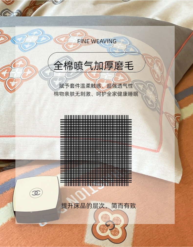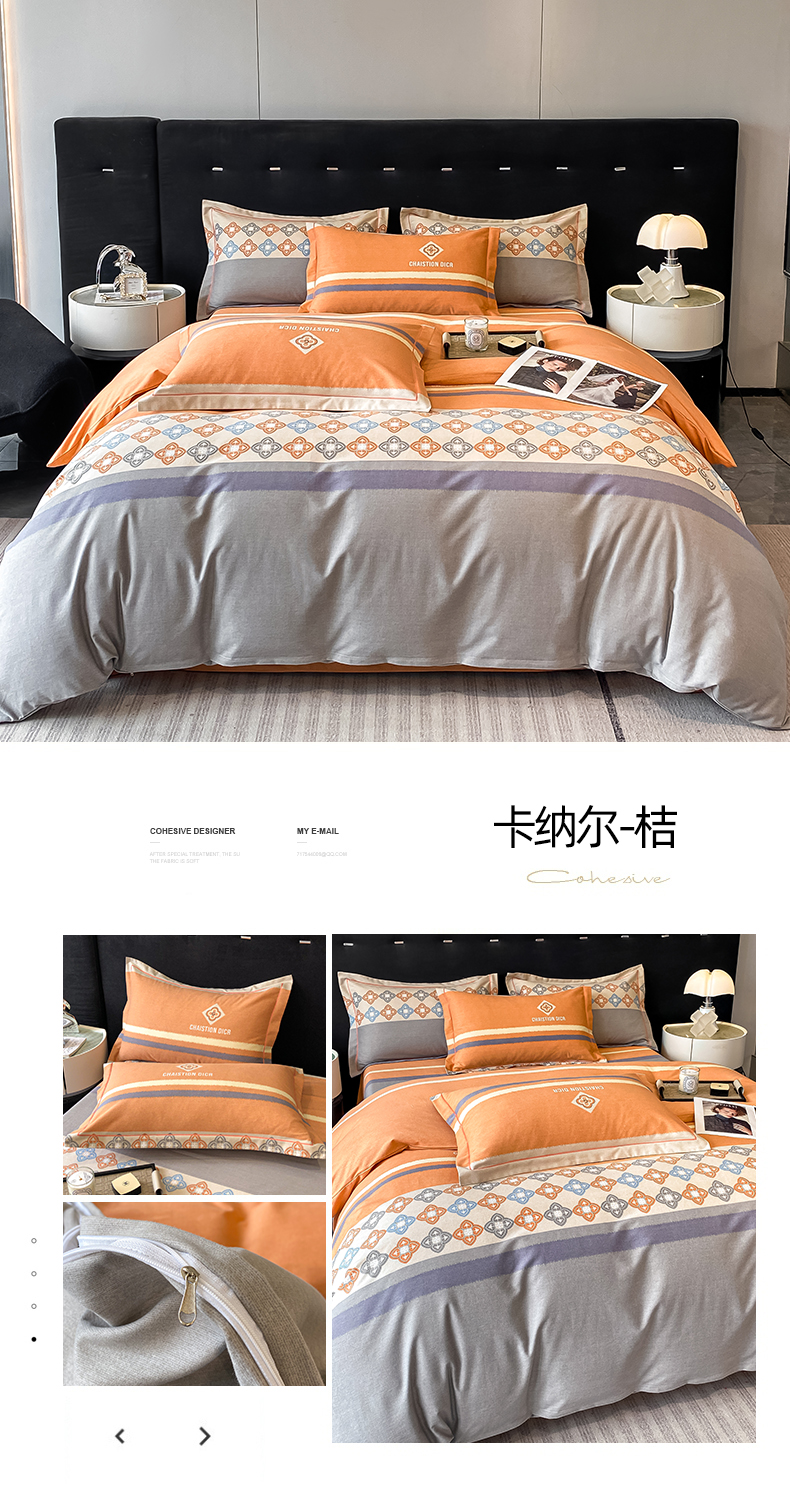 当前位置: 91家纺网 > 商品网购 > 床品套件 > 四件套 > 普通磨毛四件套 > 铭成 2024新款全棉生态喷气加厚磨毛四件套 卡纳尔-桔