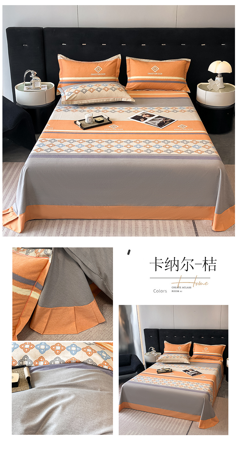 商品名称:铭成 2024新款全棉生态喷气加厚磨毛单品床单 卡纳尔-桔