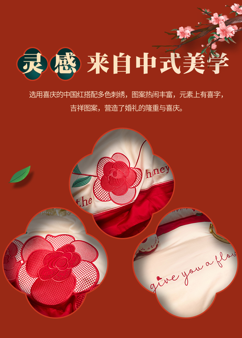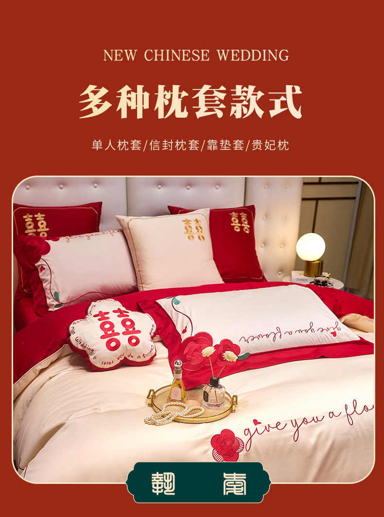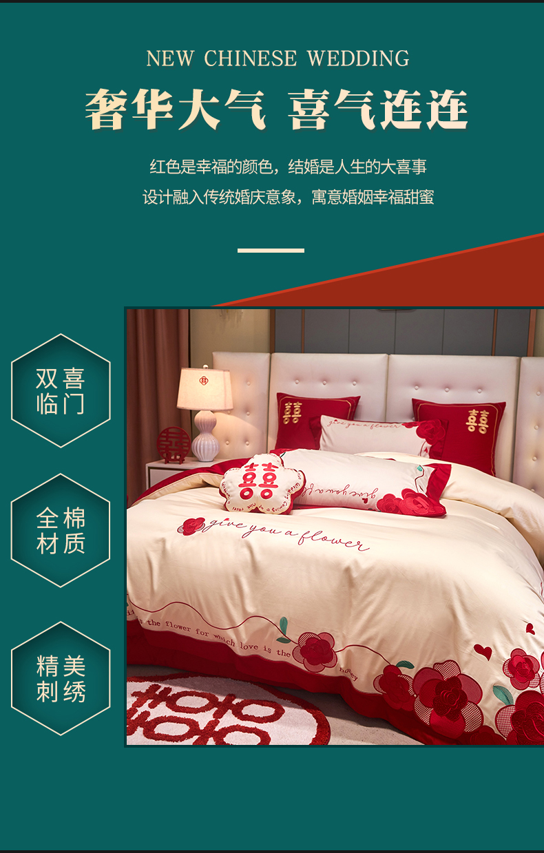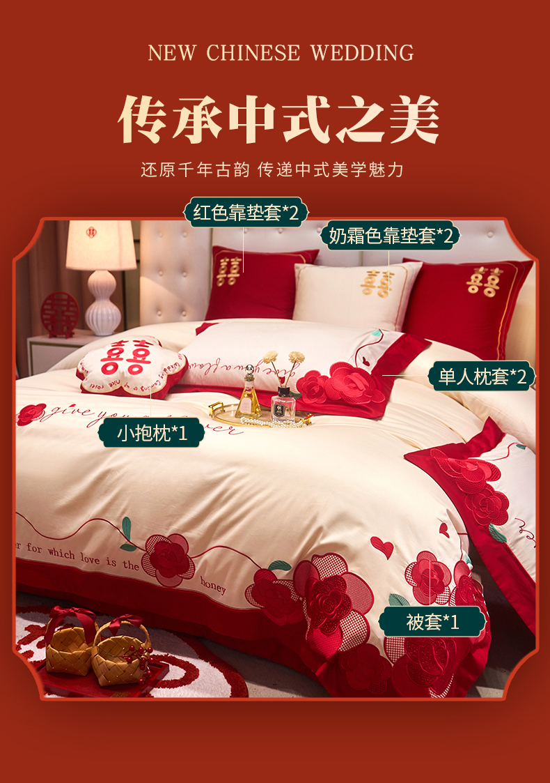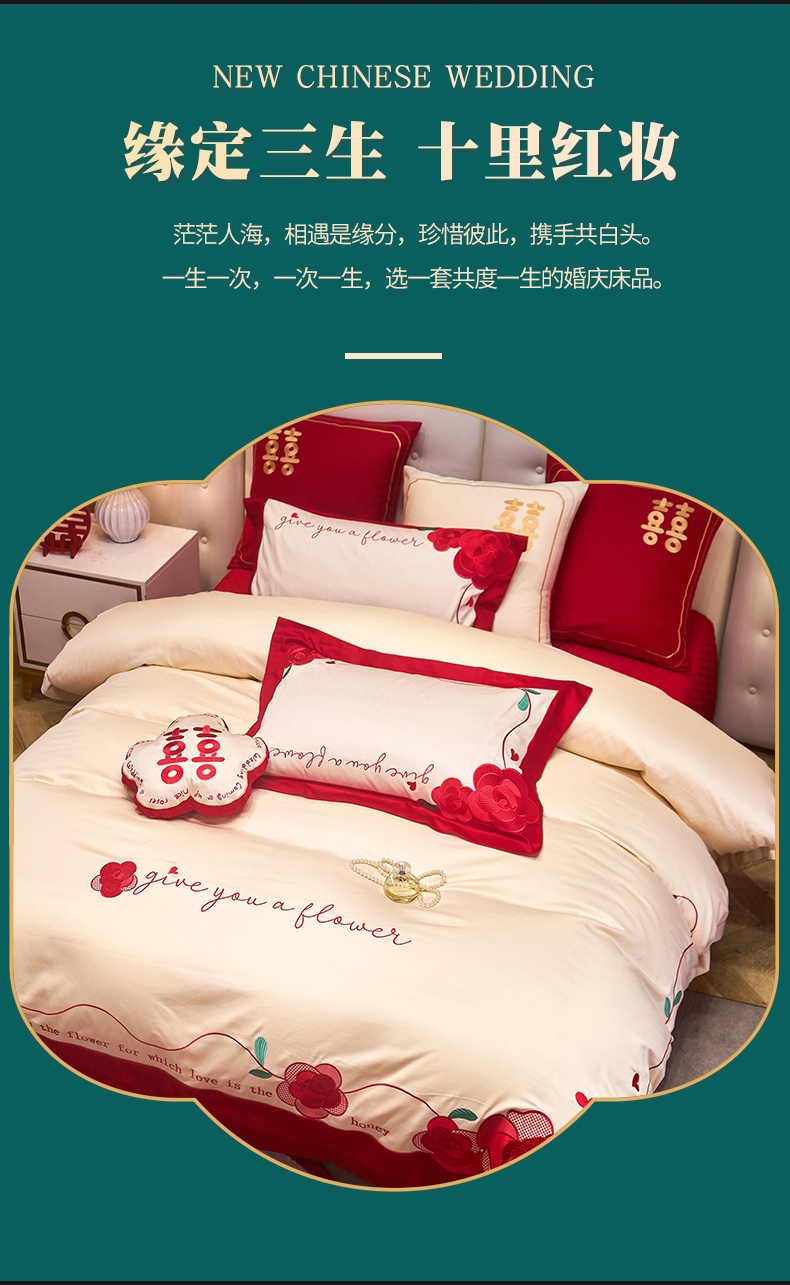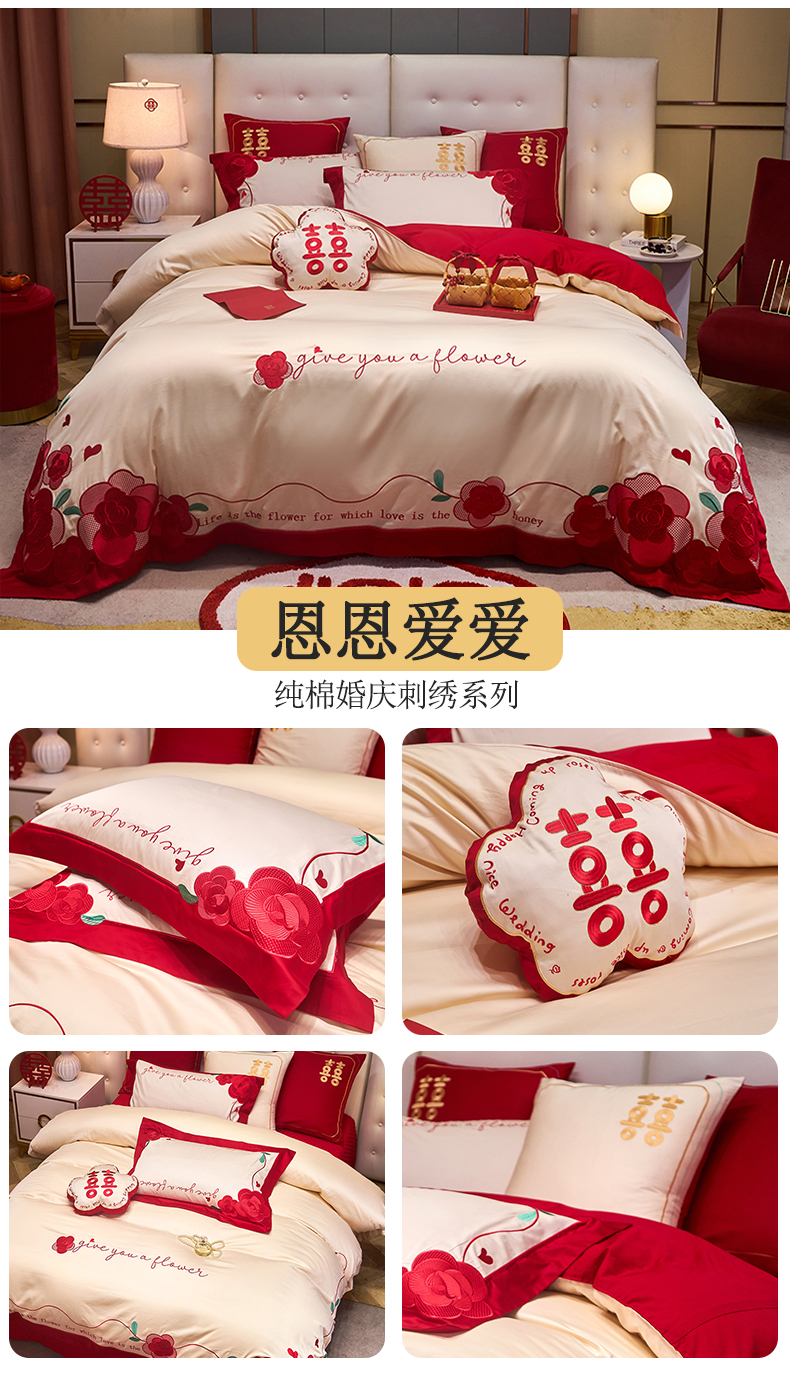 当前位置: 91家纺网 > 商品网购 > 床品套件 > 四件套 > 全棉普通四件套 > 红番天 2025新款全棉提花全棉刺绣婚庆四件套六件套多件套 恩恩爱爱