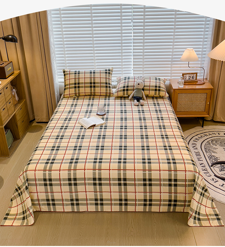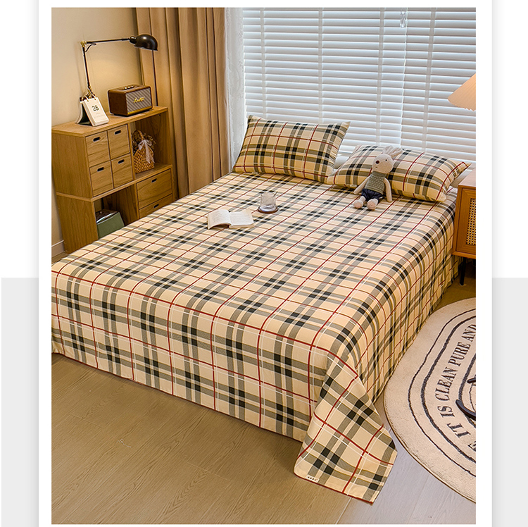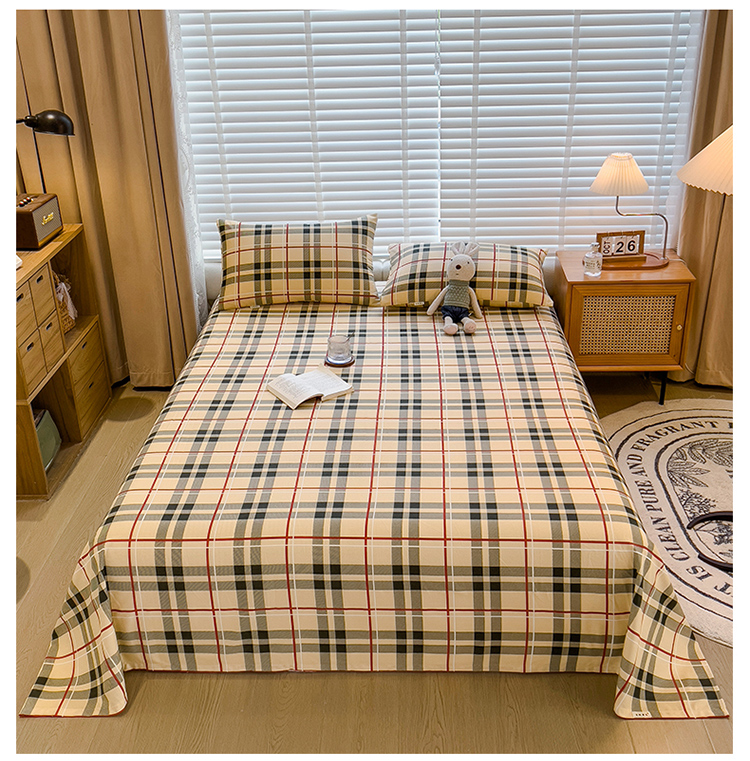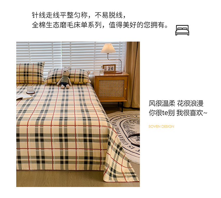 • 91家纺网 家纺一手货源 找家纺 芃成家纺 2023磨毛单床单 经典格-棕