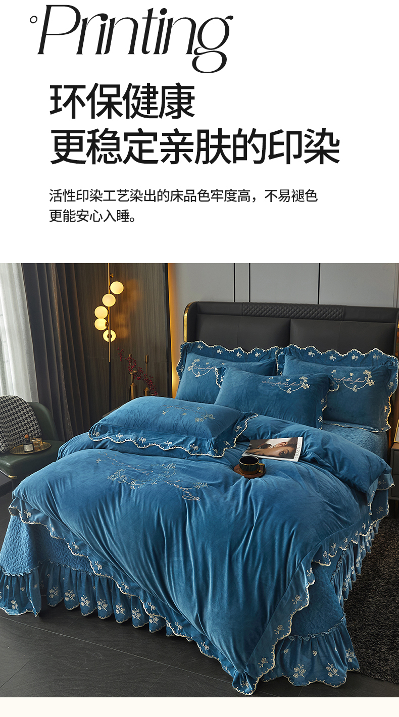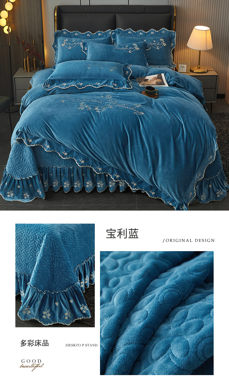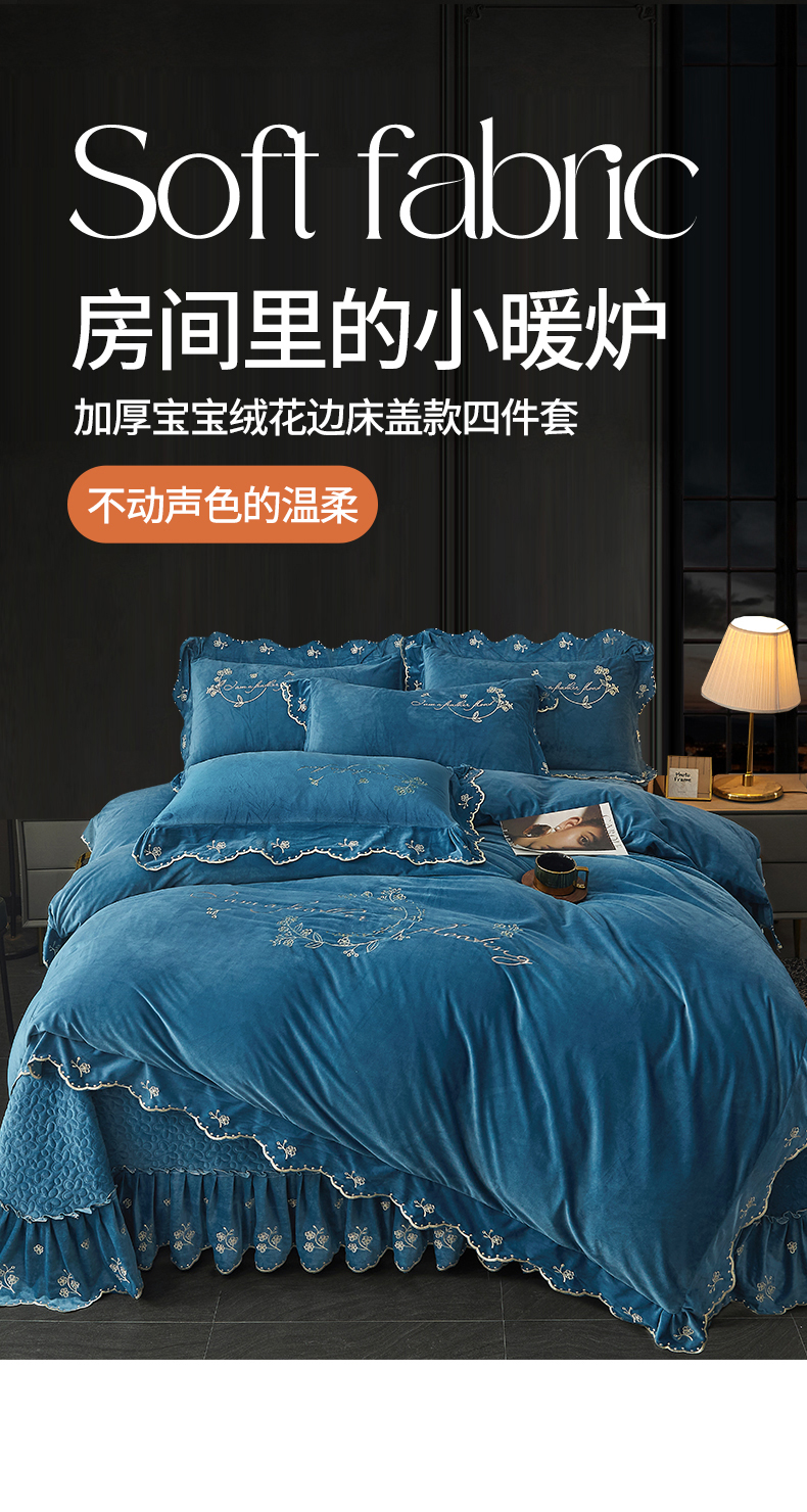 (总)恒爱 2022新款秋冬轻奢宝宝绒刺绣床裙款四件套,爱玛橙,宾利蓝,豆沙红,橄榄绿,高级灰,酒红,梦想粉,浅灰蓝,温馨粉,喜庆红,香妃粉,香芋紫