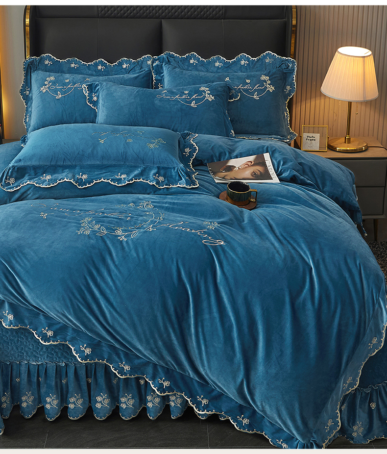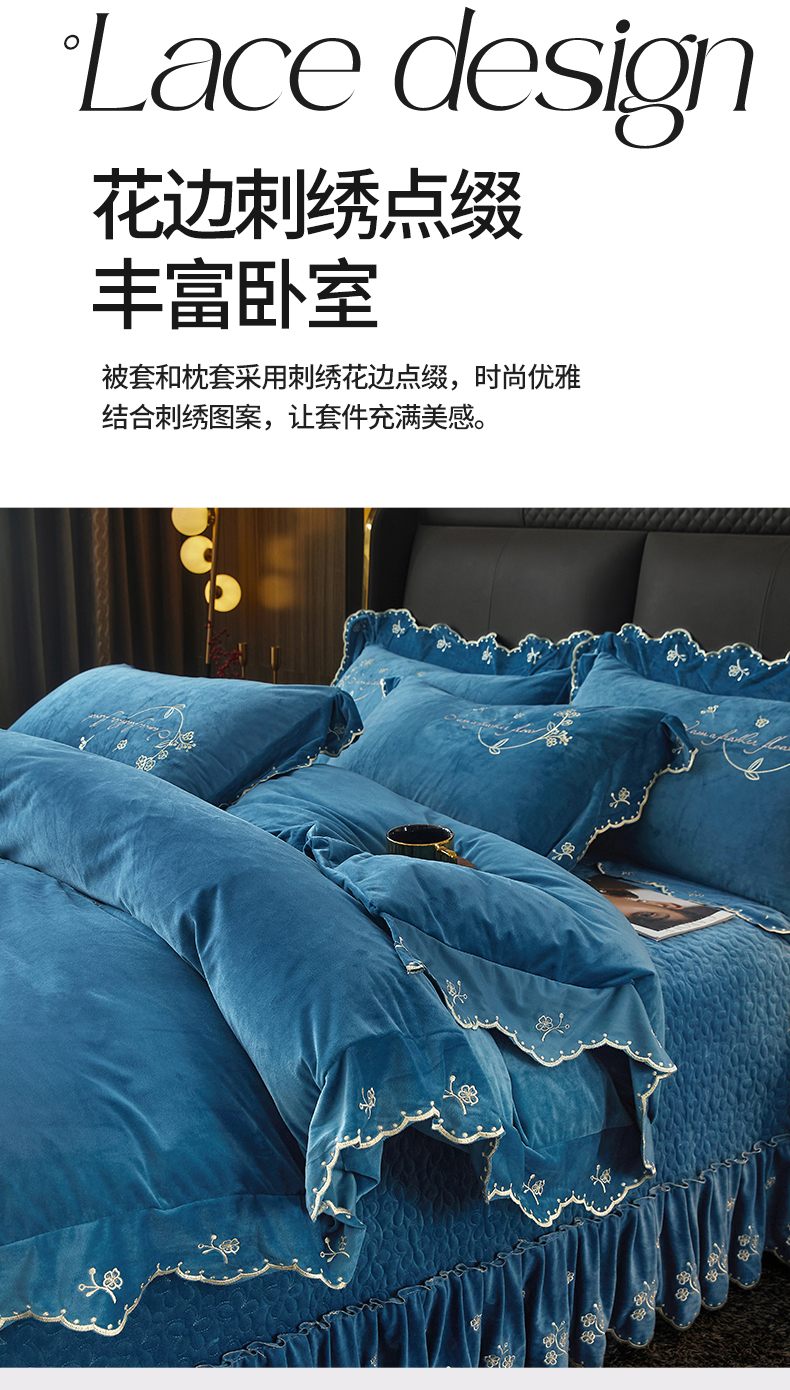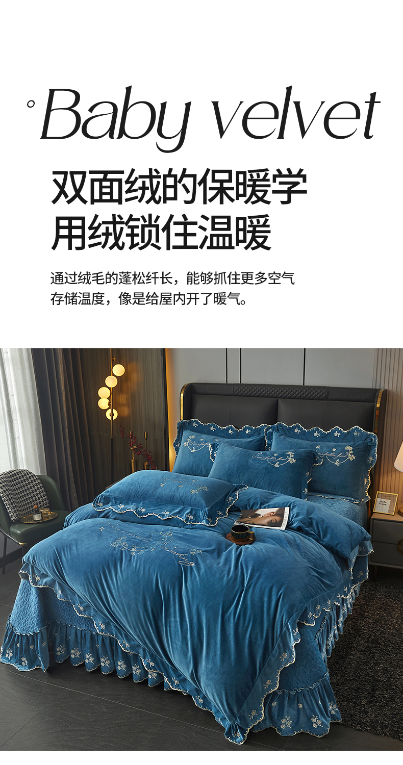 (总)恒爱 2022新款秋冬轻奢宝宝绒刺绣床裙款四件套,爱玛橙,宾利蓝,豆沙红,橄榄绿,高级灰,酒红,梦想粉,浅灰蓝,温馨粉,喜庆红,香妃粉,香芋紫