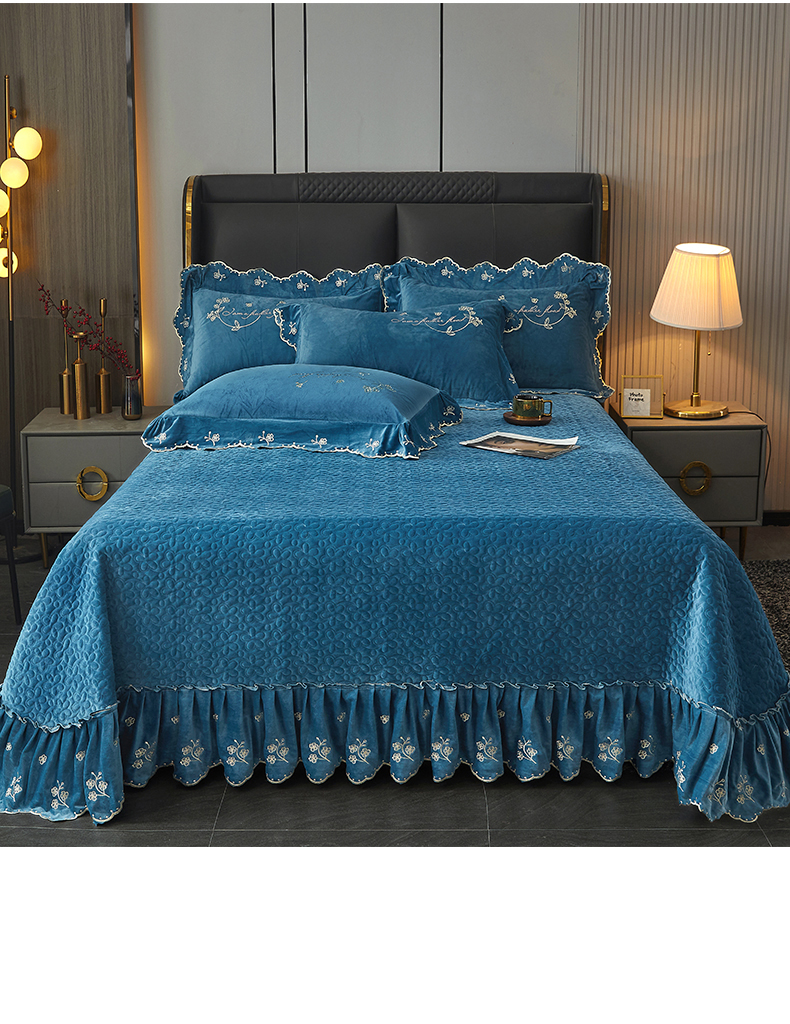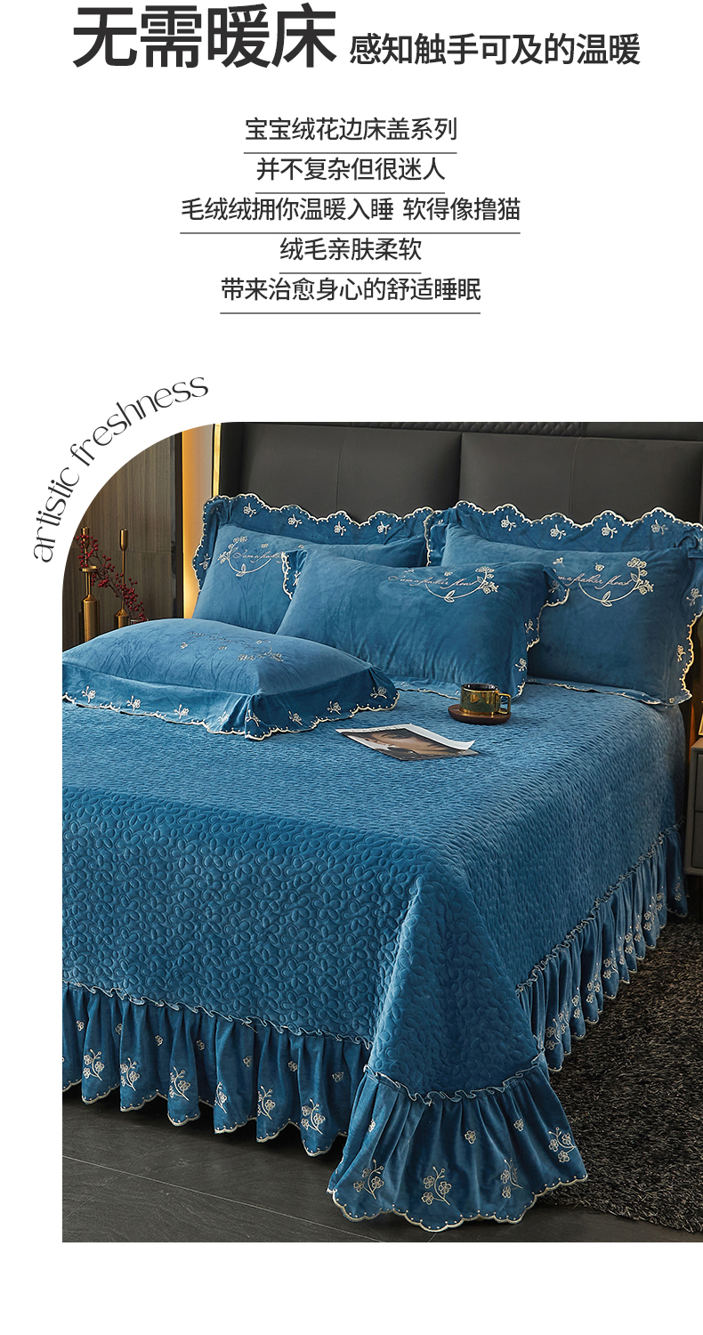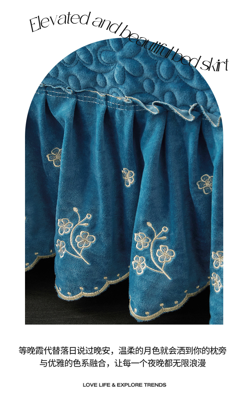 (总)恒爱 2022新款秋冬轻奢宝宝绒刺绣单床裙,爱玛橙,宾利蓝,豆沙红,橄榄绿,高级灰,酒红,梦想粉,浅灰蓝,温馨粉,喜庆红,香妃粉,香芋紫
