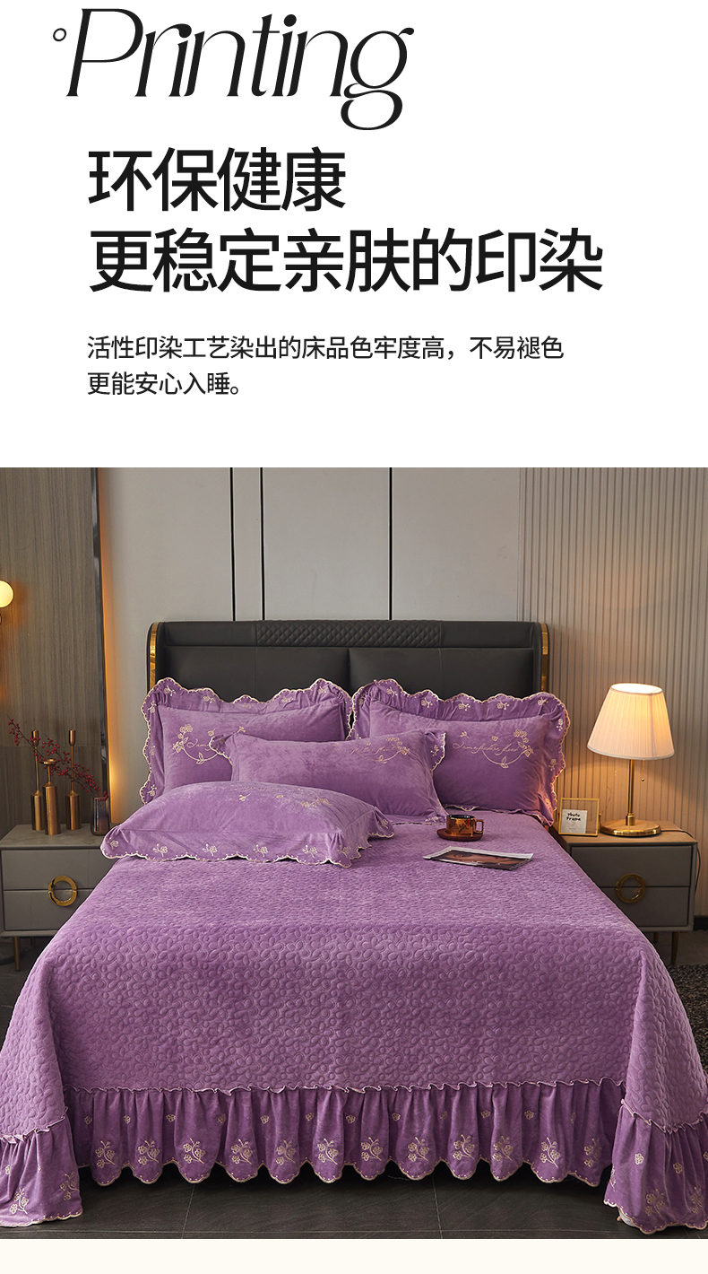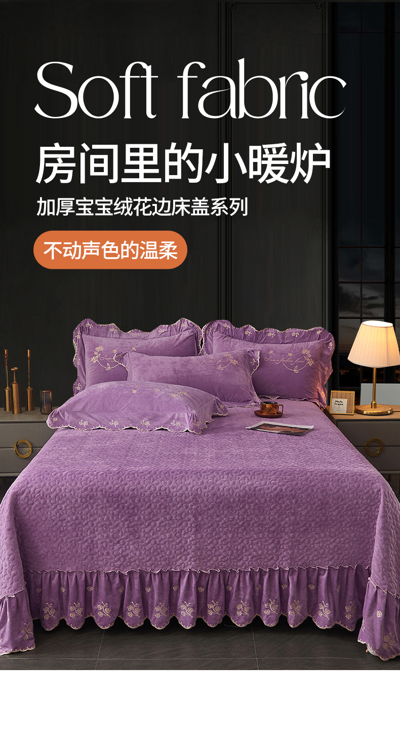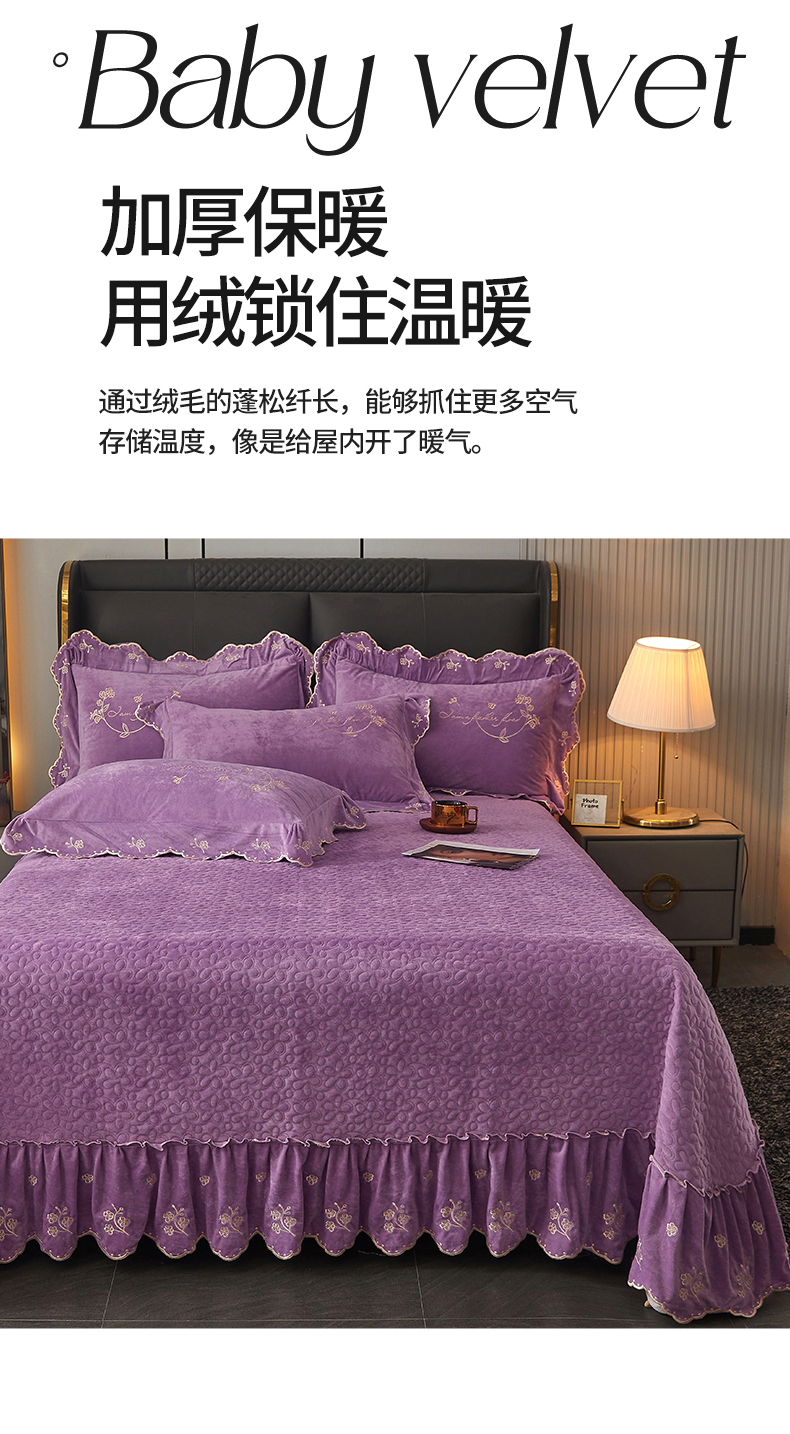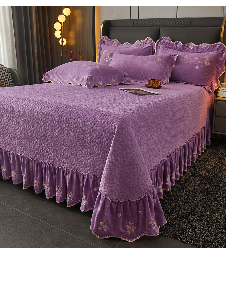 (总)恒爱 2022秋冬水晶绒翩翩花舞夹棉床裙四件套,大红色,豆沙红,橄榄绿,公主粉,桔色,咖啡色,孔雀绿,拉菲红,罗兰紫,玫红色,美人玉,米白色,米驼色,抹茶绿,浅灰色,紫色