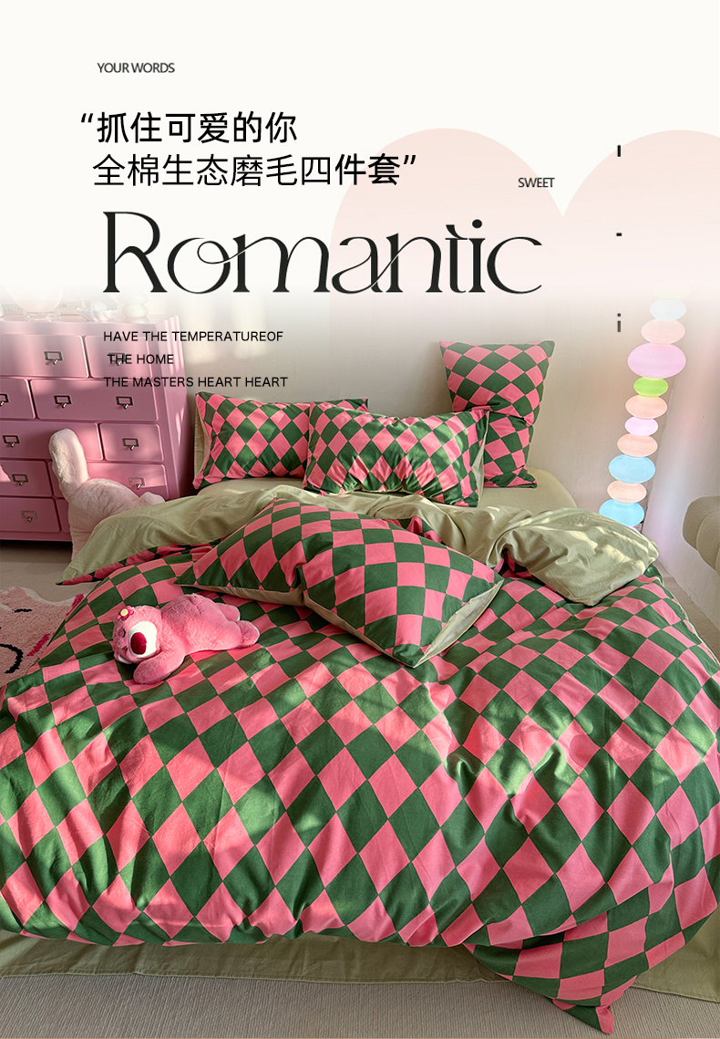 (总)千朵 2025新款全棉磨毛四件套,浪漫人生粉,浪漫人生米,香漫豆沙,茵然豆沙,茵然咖,珍妮咖,珍妮绿