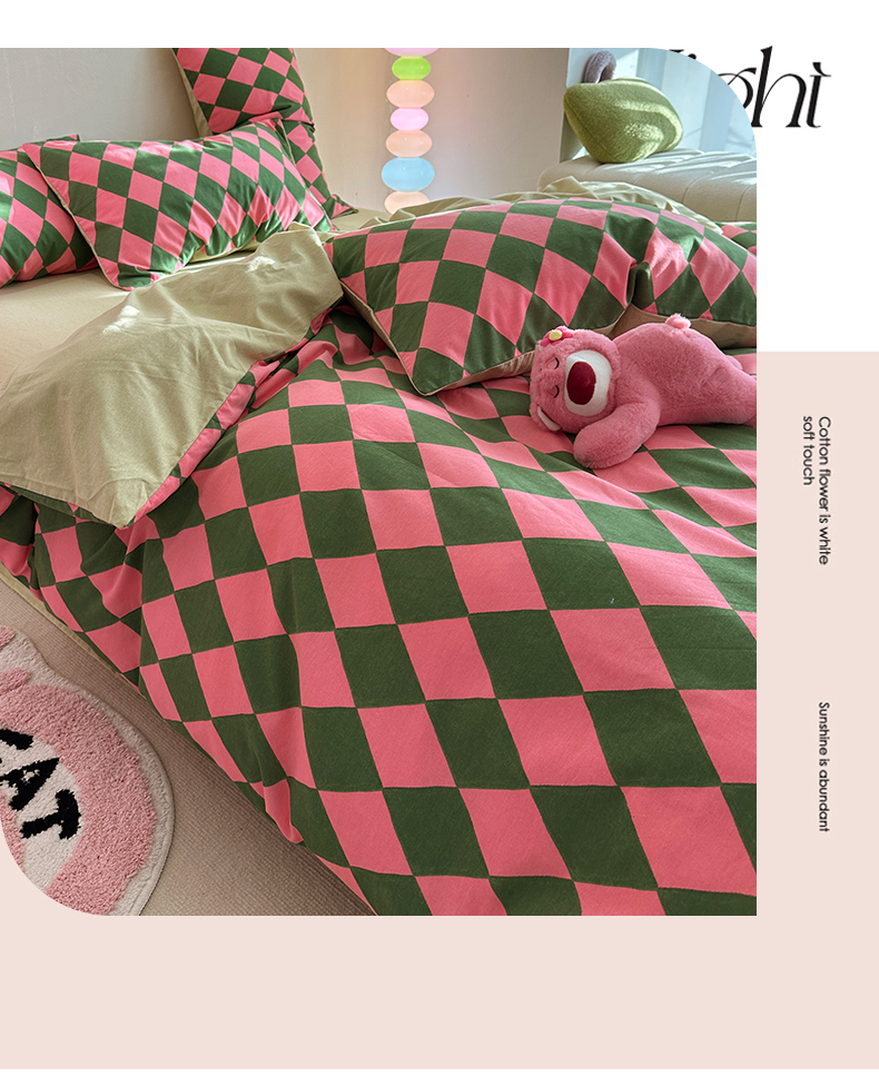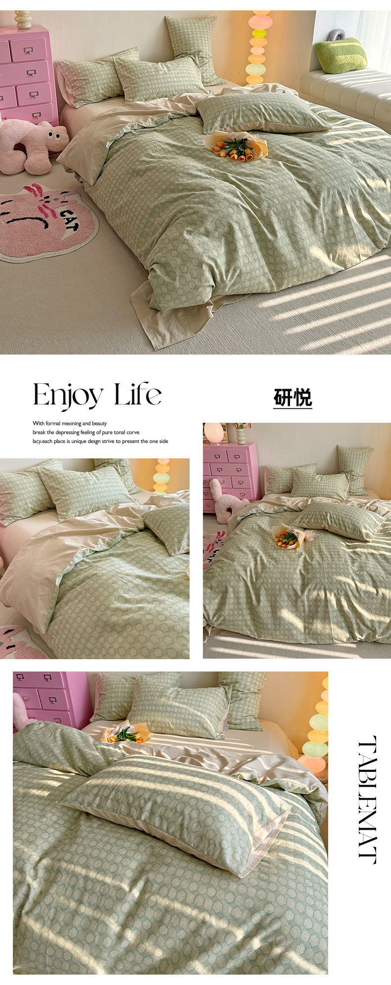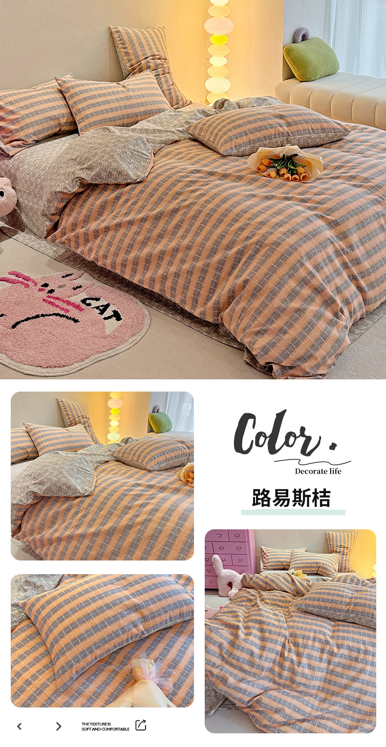 (总)千朵 2025新款全棉纯棉色织提花水洗棉四件套 富士系列,富士果绿,富士灰,富士奶黄,富士浅兰,富士浅紫,富士森绿,富士雾兰