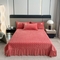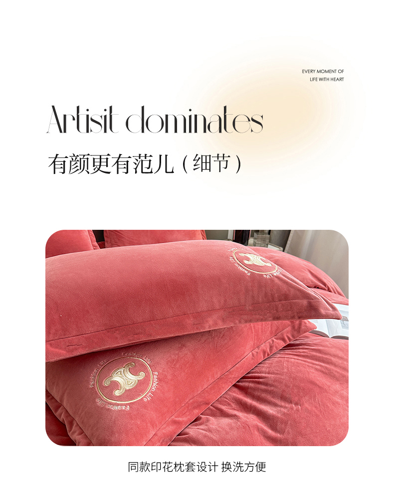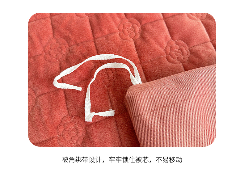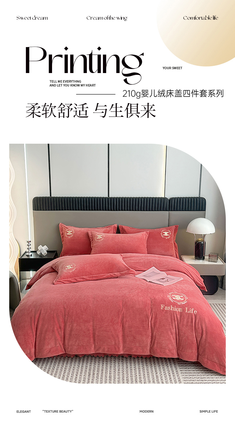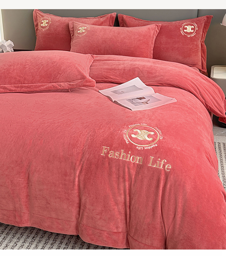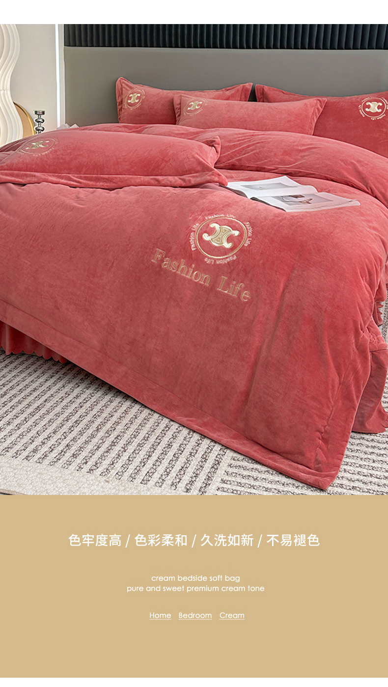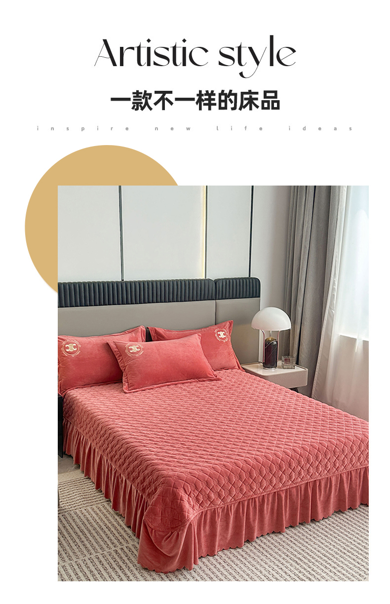 羋多家纺 210g婴儿绒床盖三件套牛奶绒床裙刺绣四件套深豆沙