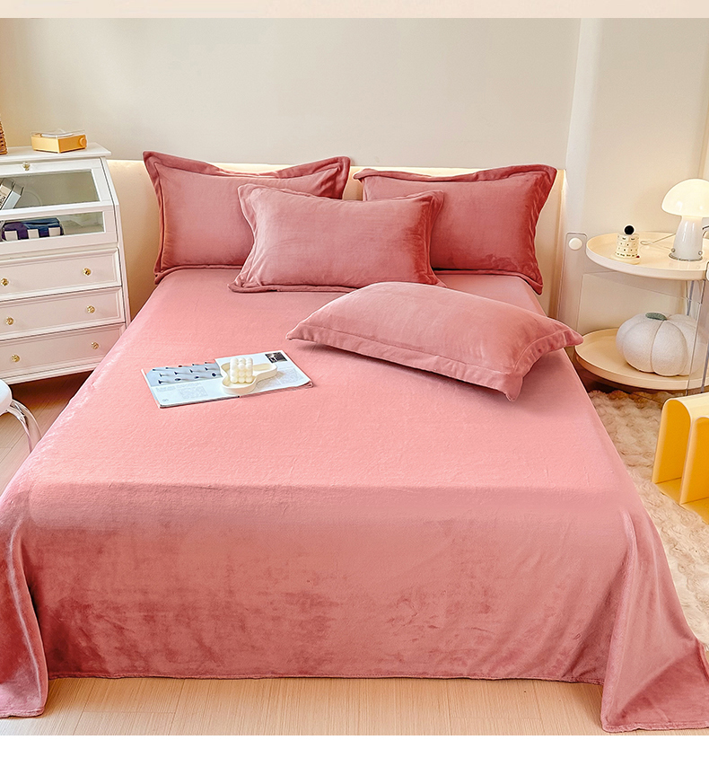 2023年新款多功能毛毯牛奶绒床单三件套 石榴红