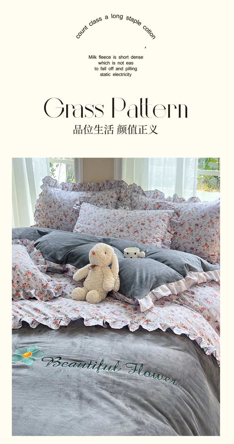当前位置: 91家纺网 > 商品网购 > 床品套件 > 四件套 > 牛奶绒四件套 > 绒兔兔 2023新款双层纱棉加牛奶绒四件套 绒-婉然