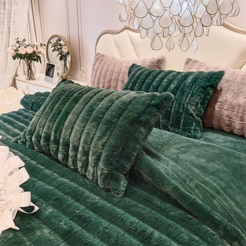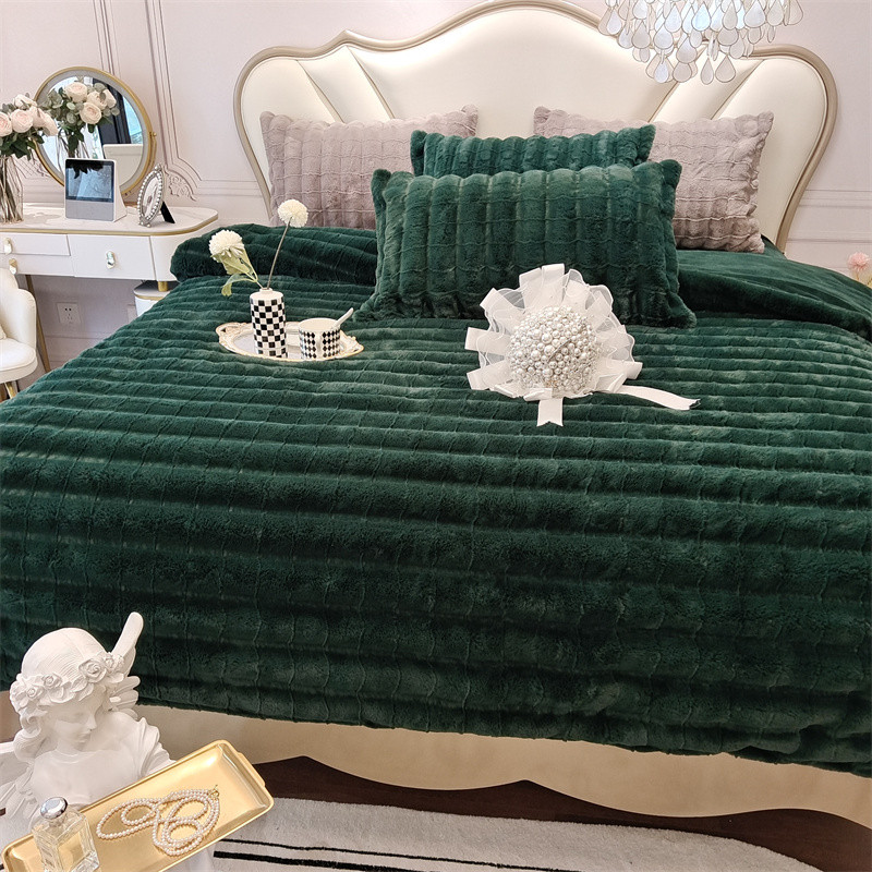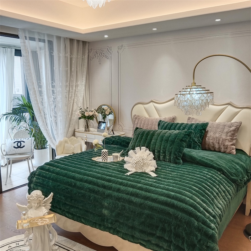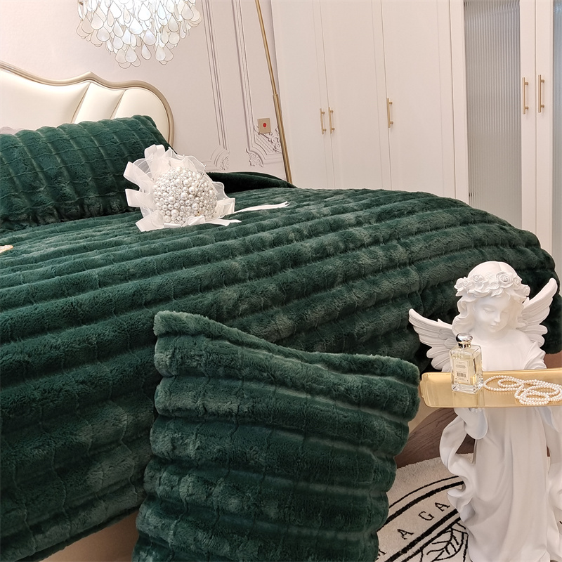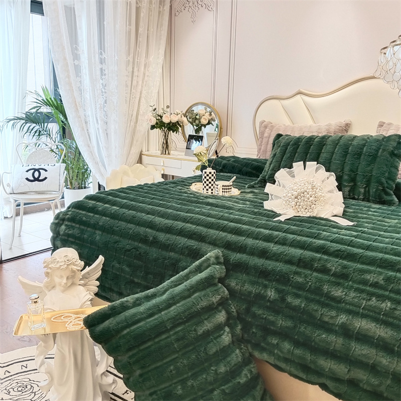 时亿 2023新款320g獭兔毛绒绒四件套 高级绿
