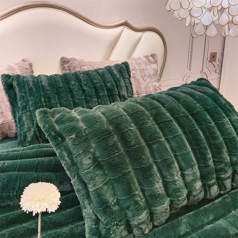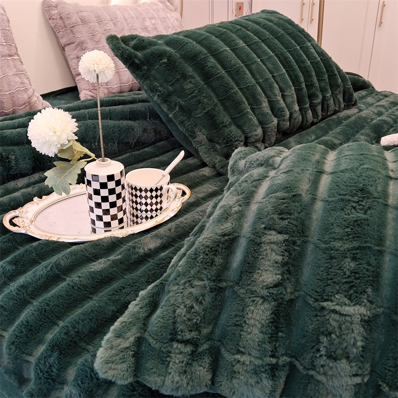 商品名称:时亿 2023新款320g獭兔毛绒绒四件套 高级绿