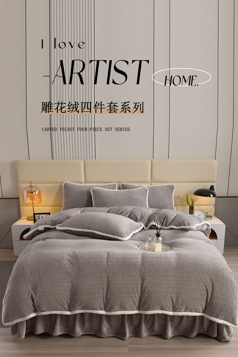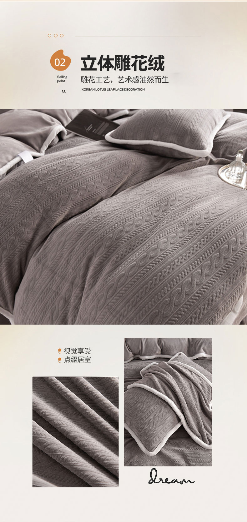 畅畅家纺 2023新款A类雕花绒牛奶绒四件套 安娜-灰
