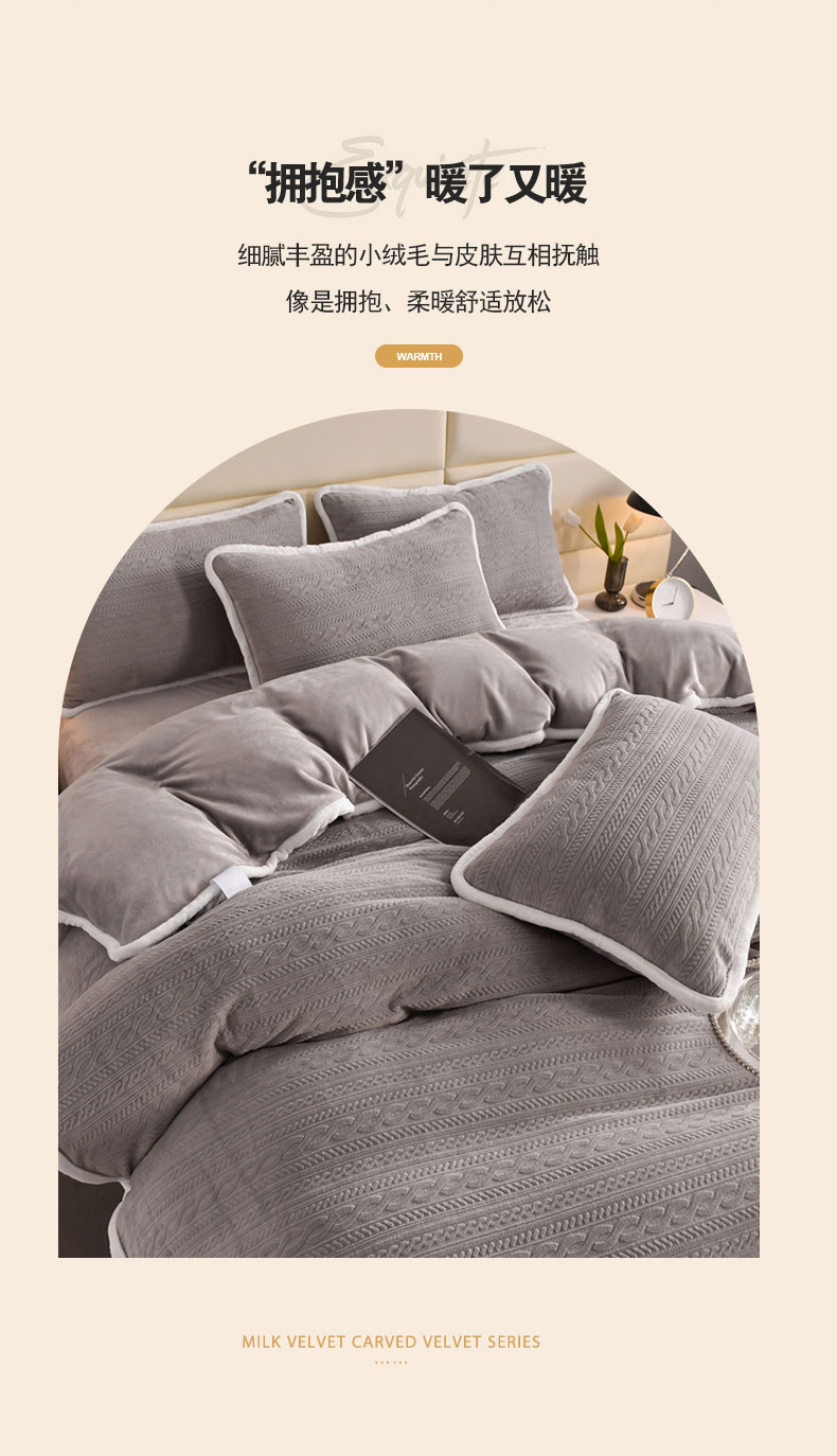 商品名称:畅畅家纺 2023新款A类雕花绒牛奶绒四件套 安娜-灰
