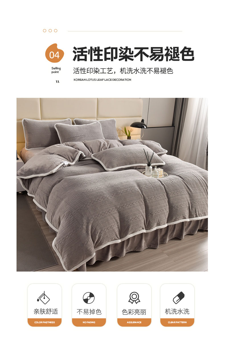 (总)畅畅家纺 2024新款高克重加厚保暖冬季牛奶绒纯色床盖款四件套,豆沙,灰色,天蓝,玉色,中国红