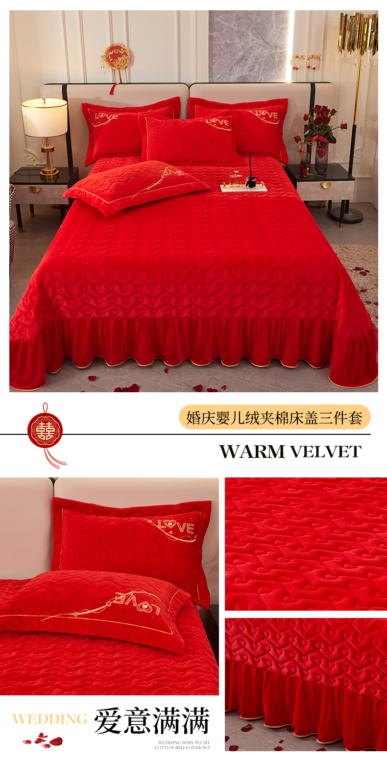 宜凡家纺 2023秋冬新品婴儿绒婚庆床盖三件套 爱意满满