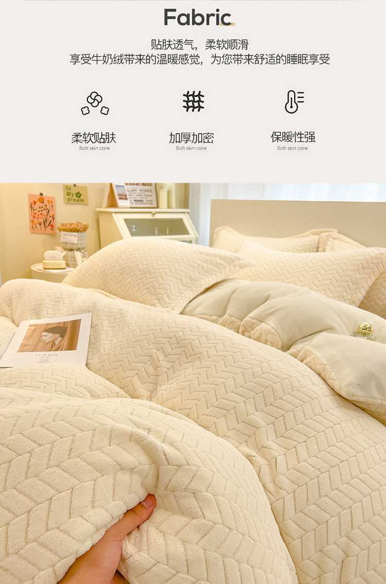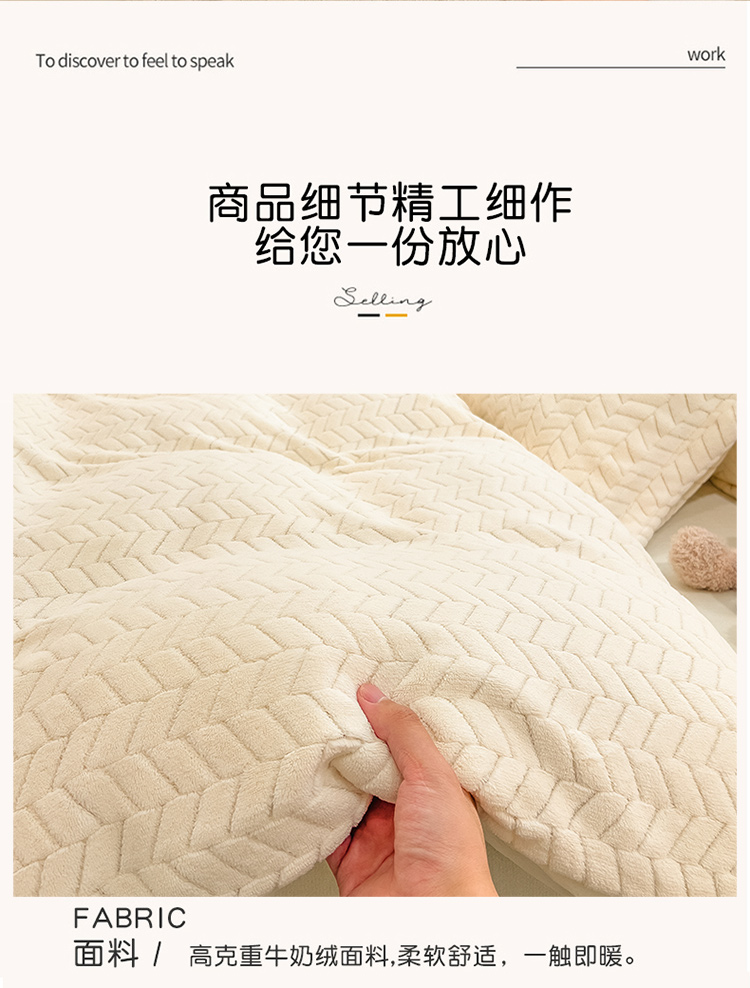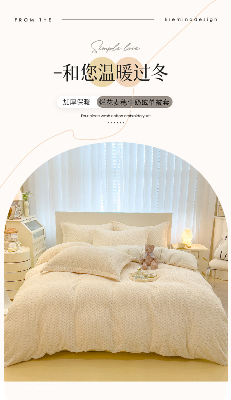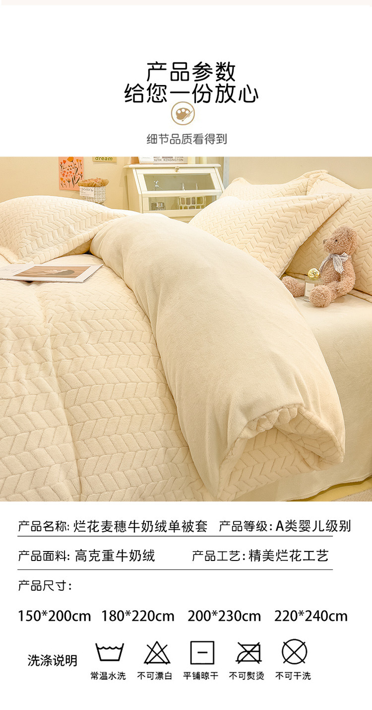商品名称:全季家居 2023新款麦穗纹高克重牛奶绒色织提花被套单件 米白