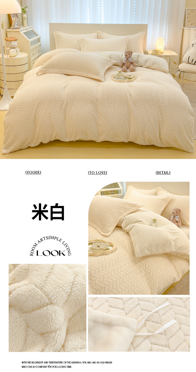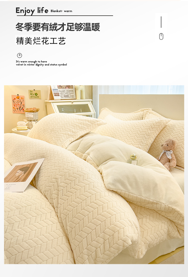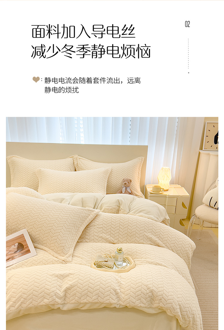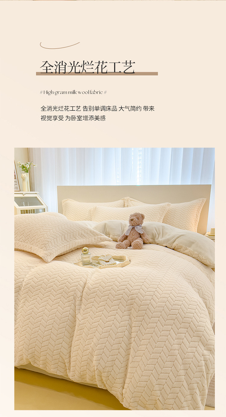 商品名称:全季家居 2023新款麦穗纹高克重牛奶绒色织提花被套单件 米白