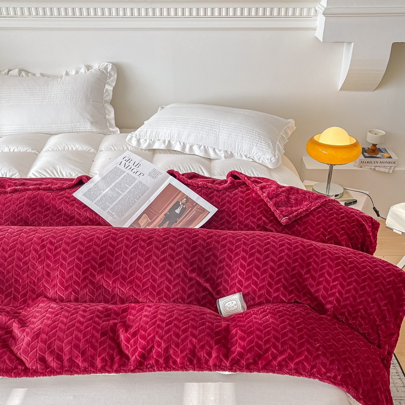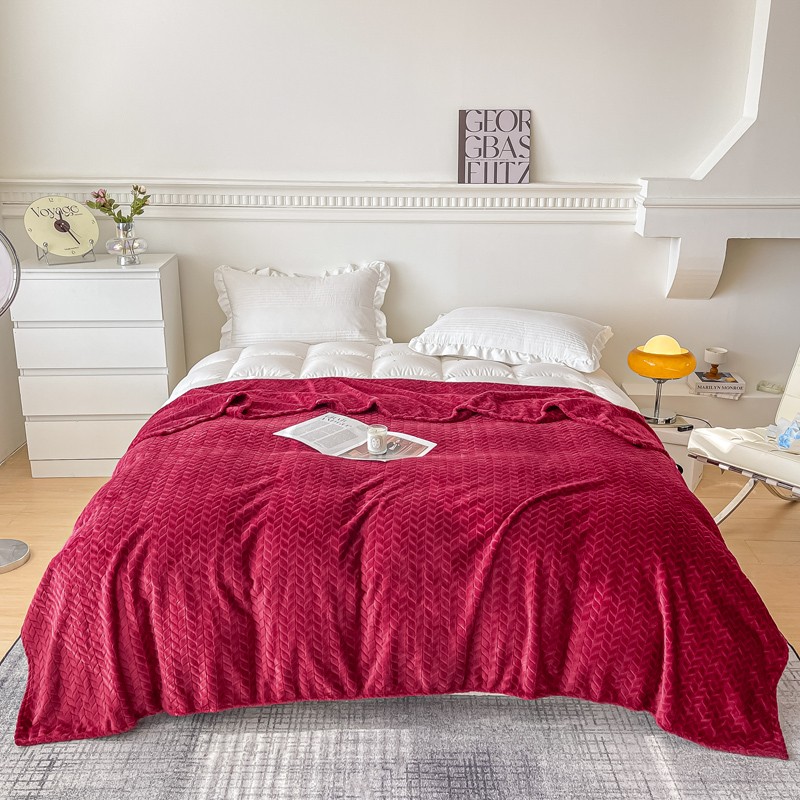 商品名称:金来家纺 跨境电商 2024新款法莱绒提花麦穗毛毯 盖毯子办公午睡毯 提花麦穗 酒红