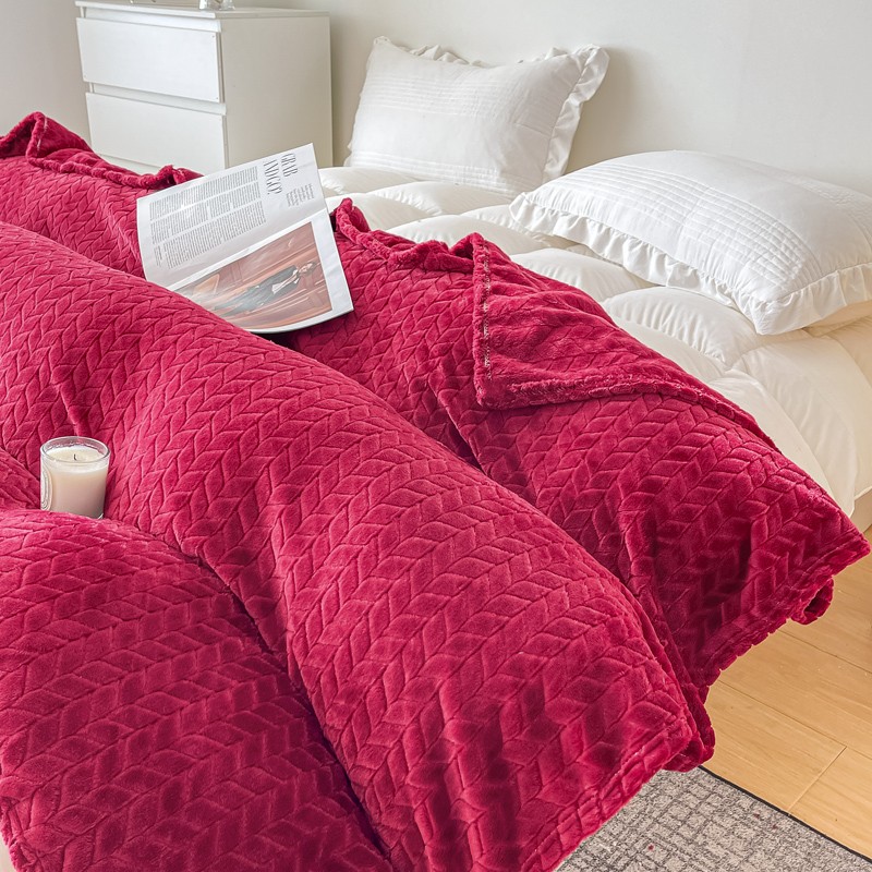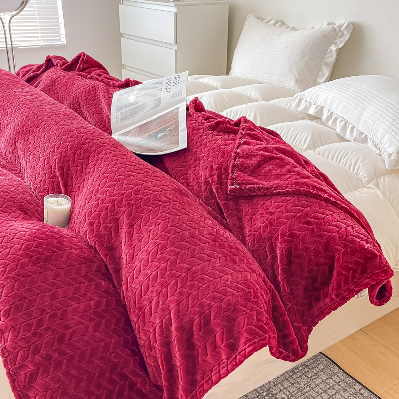 金来家纺 牛奶绒魔法绒法莱绒雪花绒毛毯 剪花绒毛毯 酒红,酒红