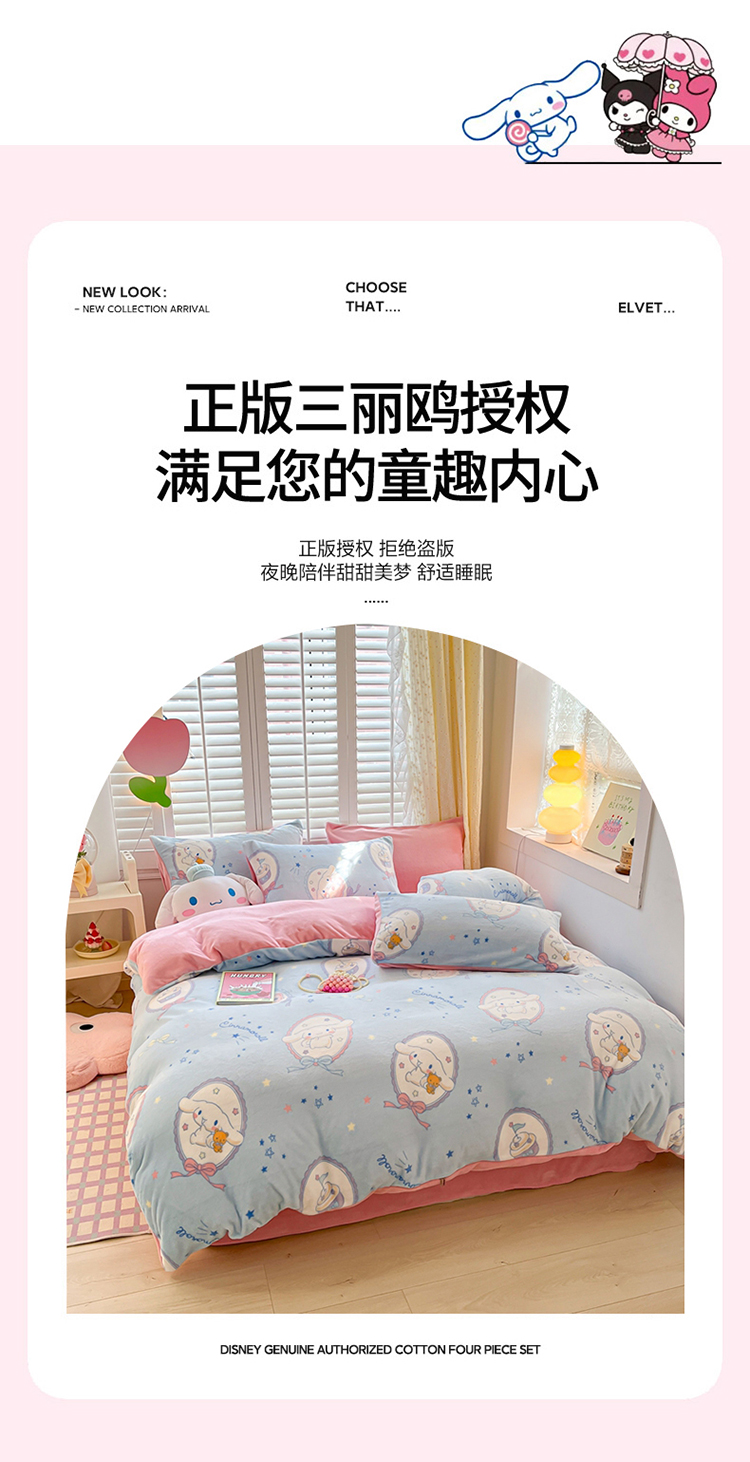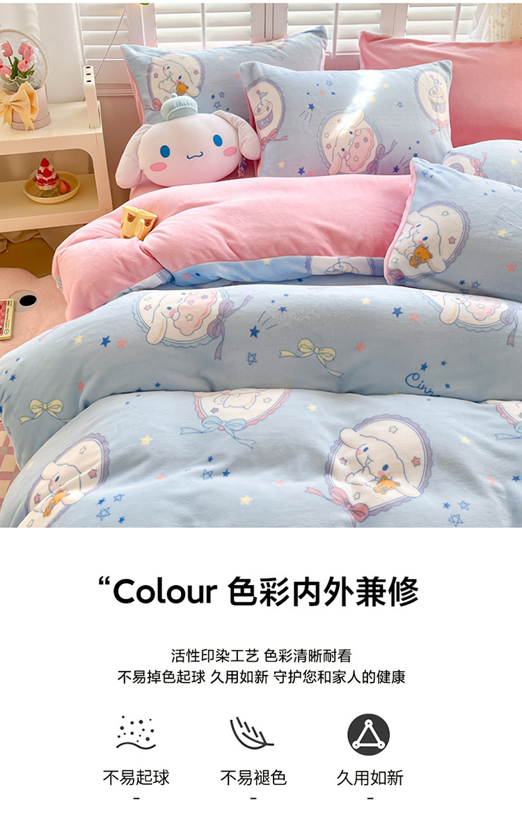 商品名称:星座 2025三丽鸥牛奶绒四件套 蛋糕大耳狗