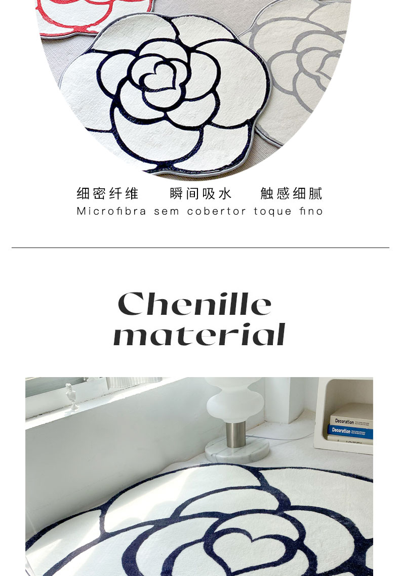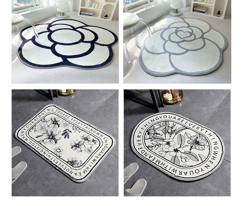 商品名称:爵仕家纺 2023新款仿羊绒山茶花地毯地垫 爱心银灰
