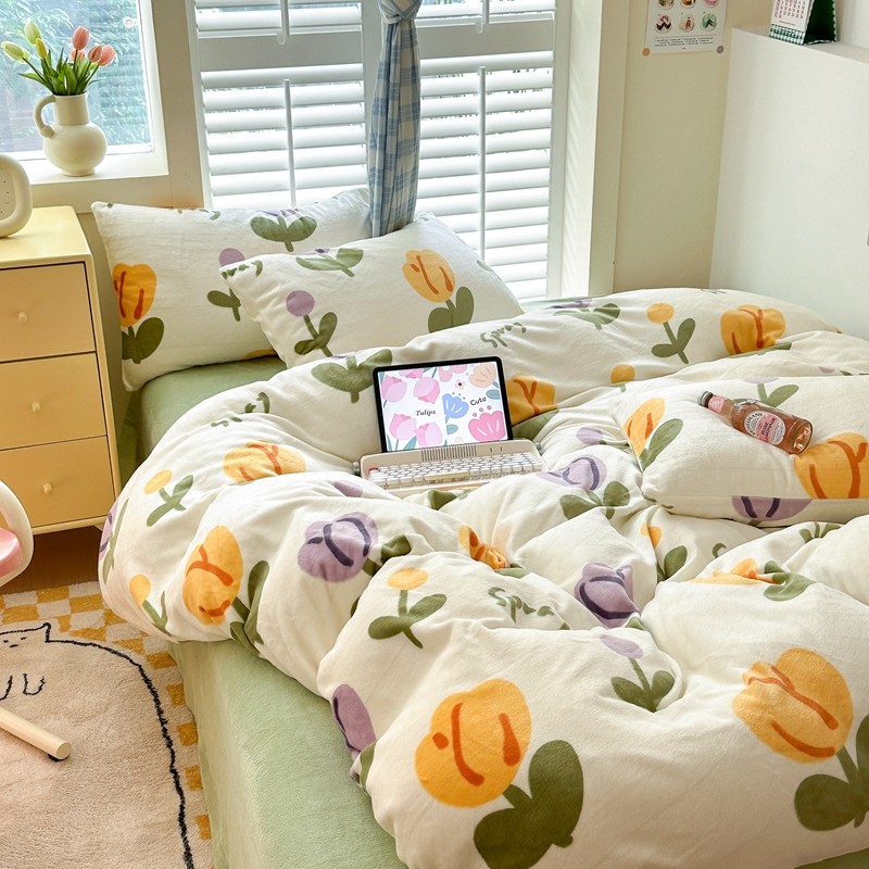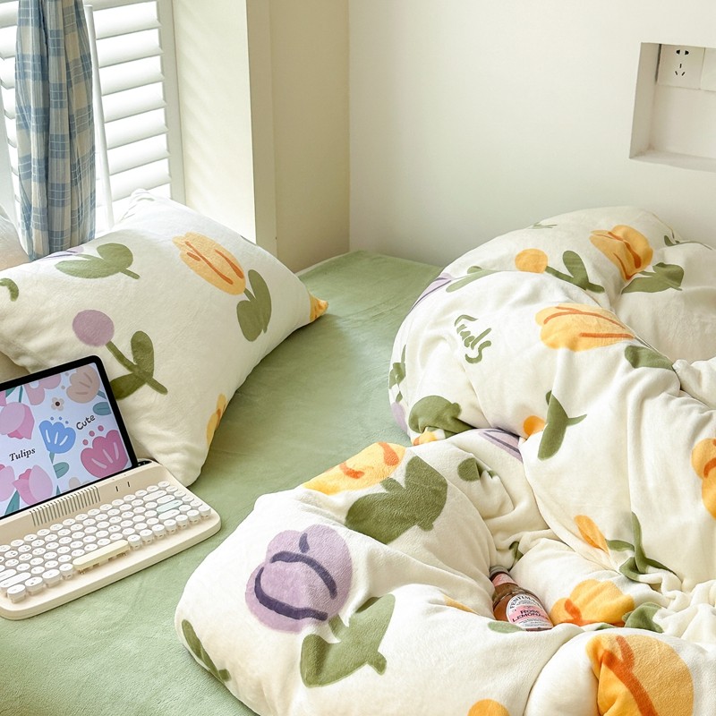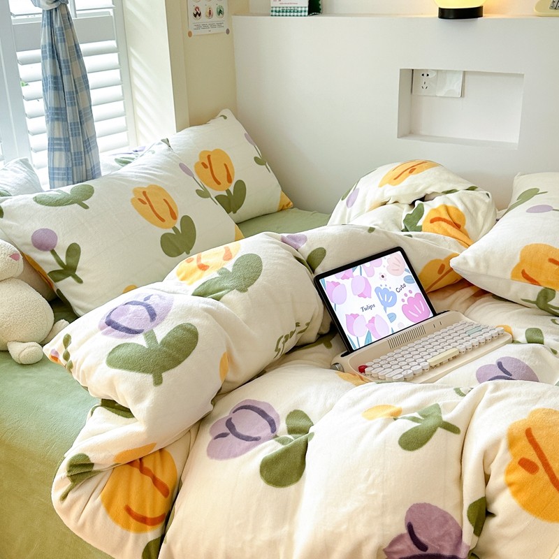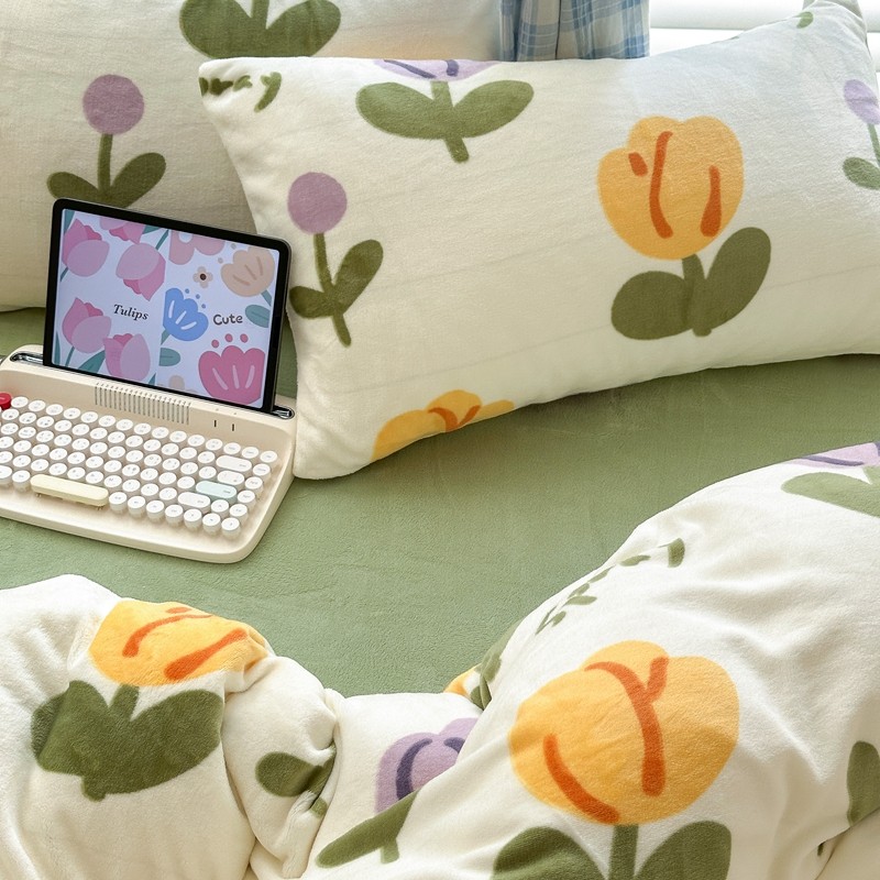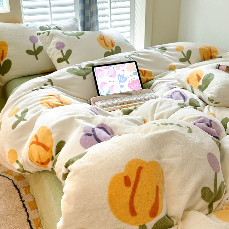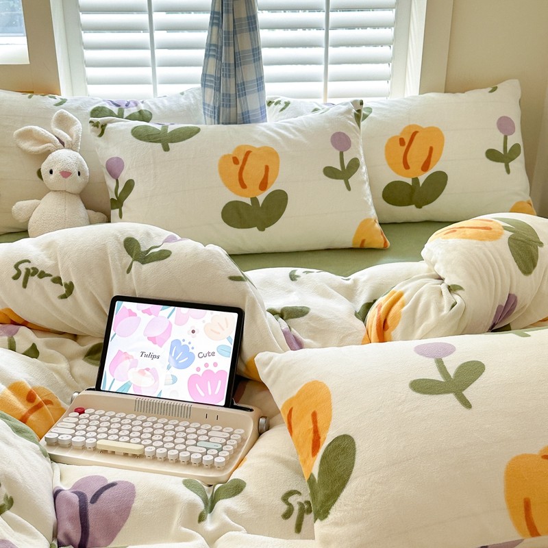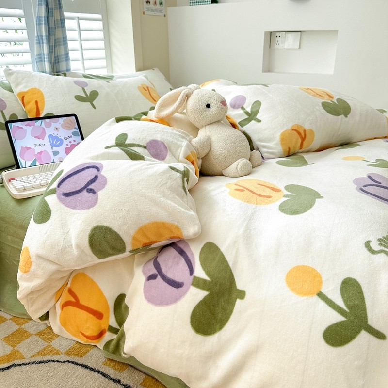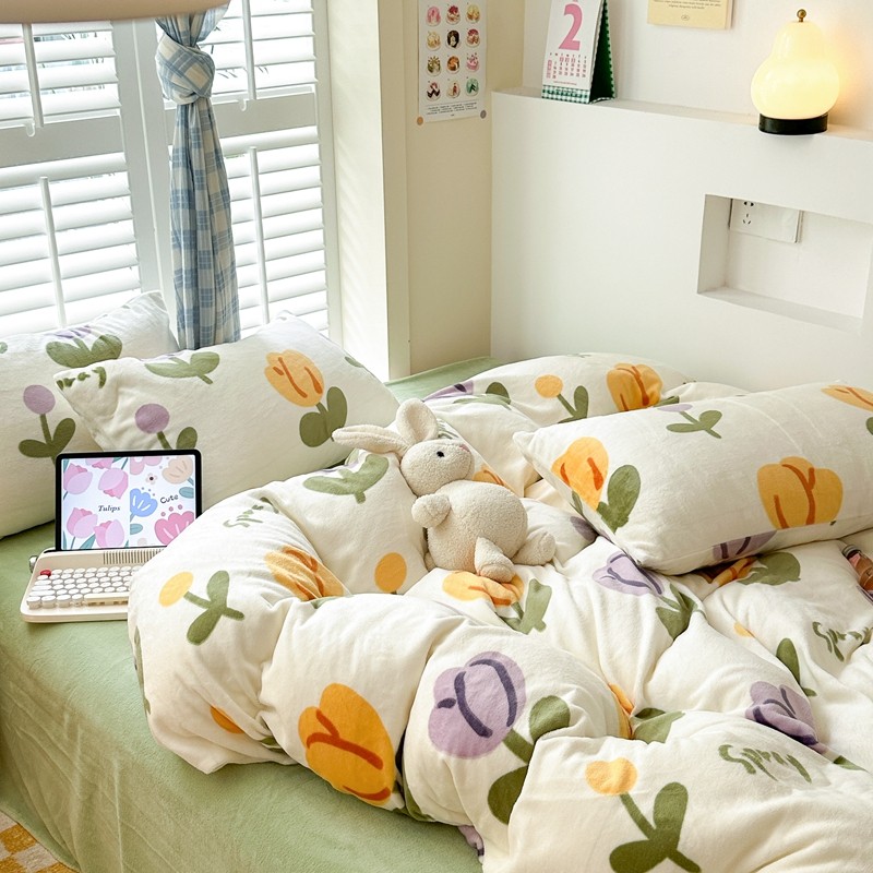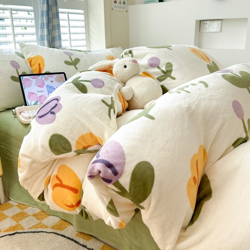 2023秋冬新款220克高克重牛奶绒印花四件套 郁金香