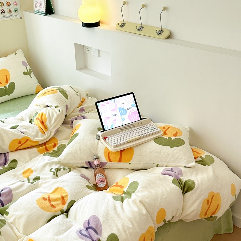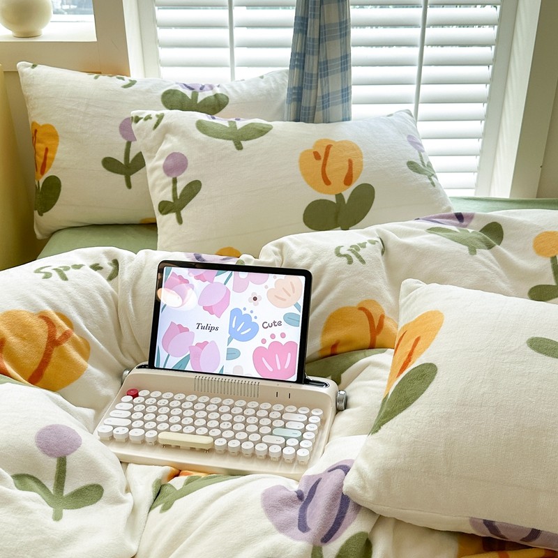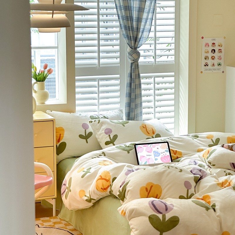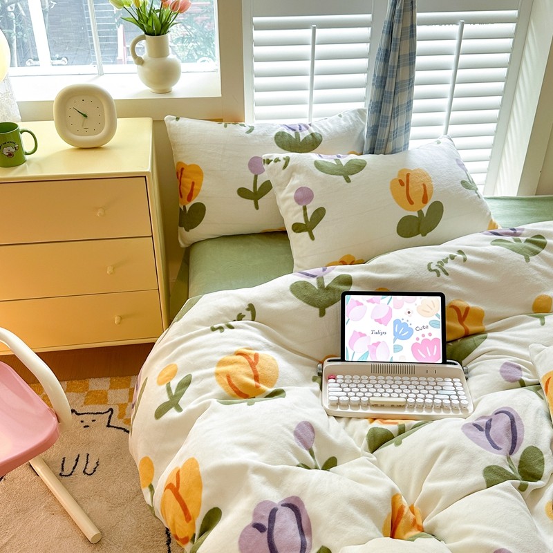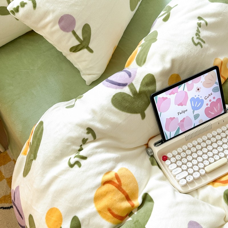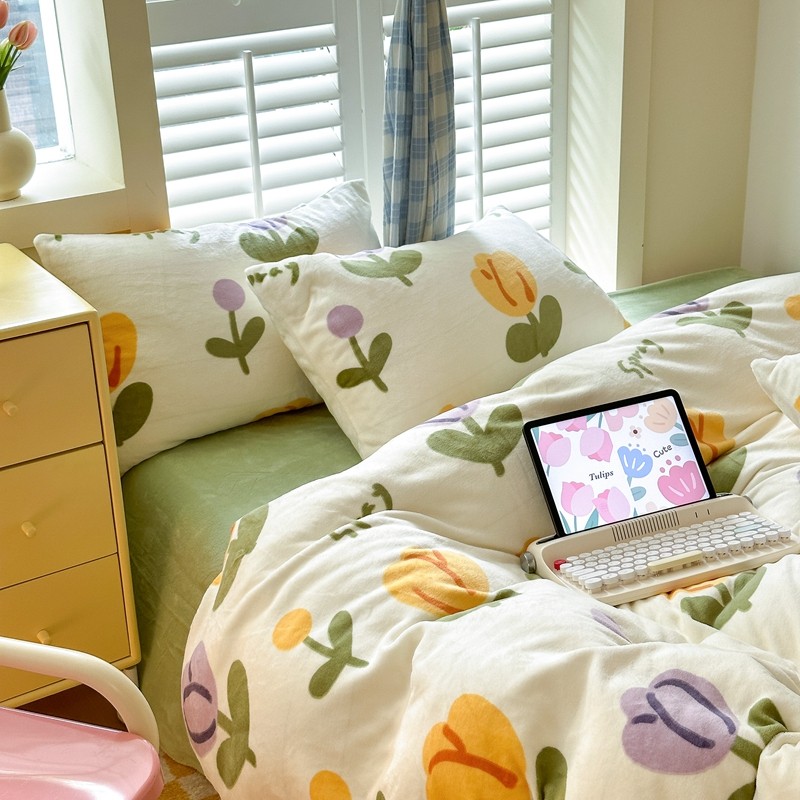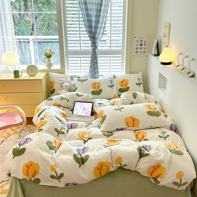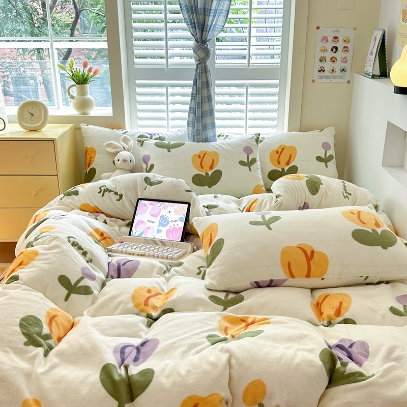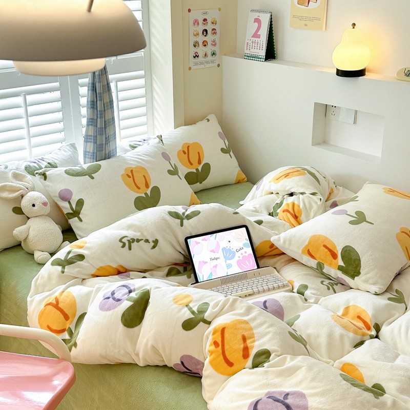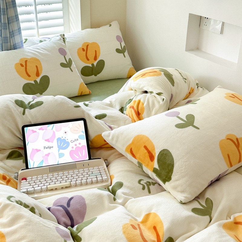 2023秋冬新款220克高克重牛奶绒印花四件套 郁金香