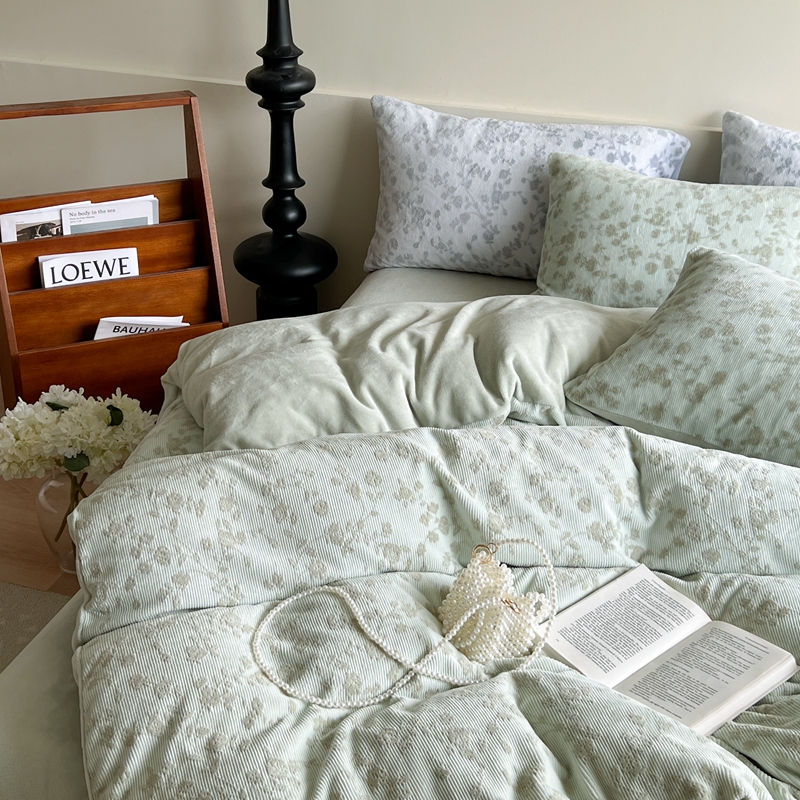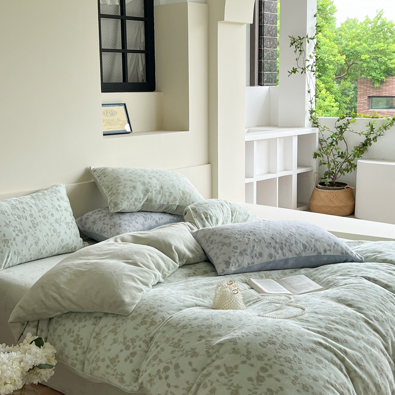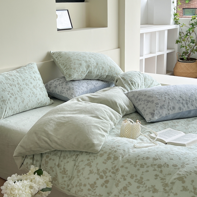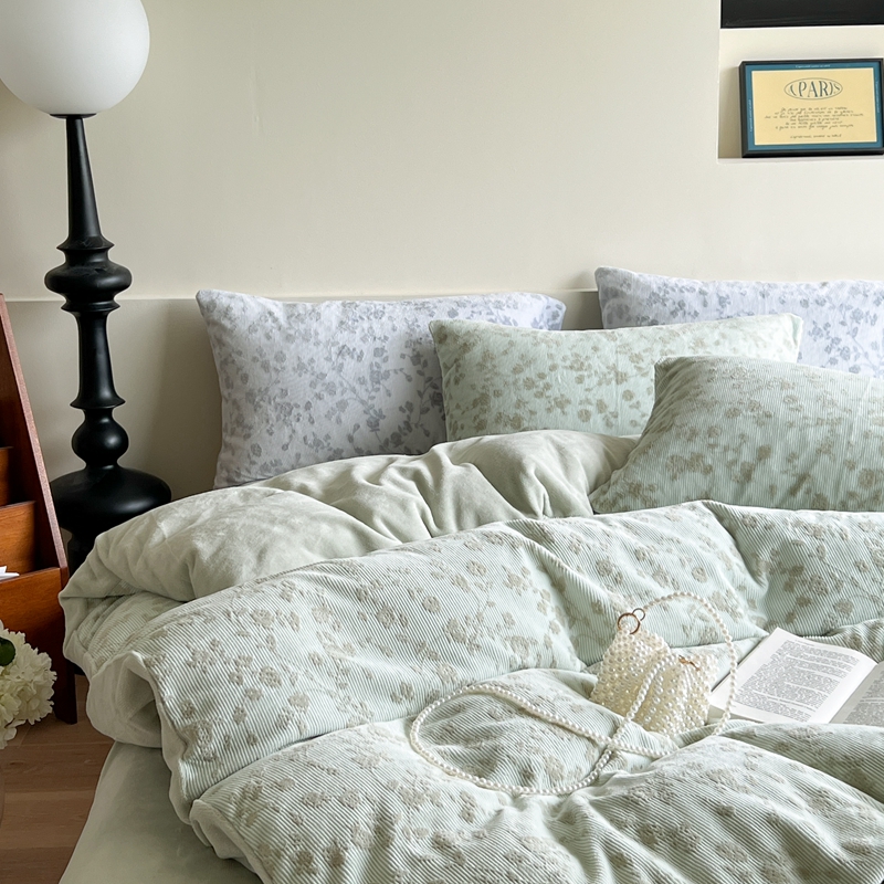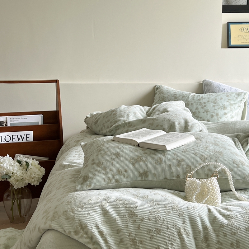 柚子YOUTH 2023新款日系色烂雕花绒四件套 小春日和 绿