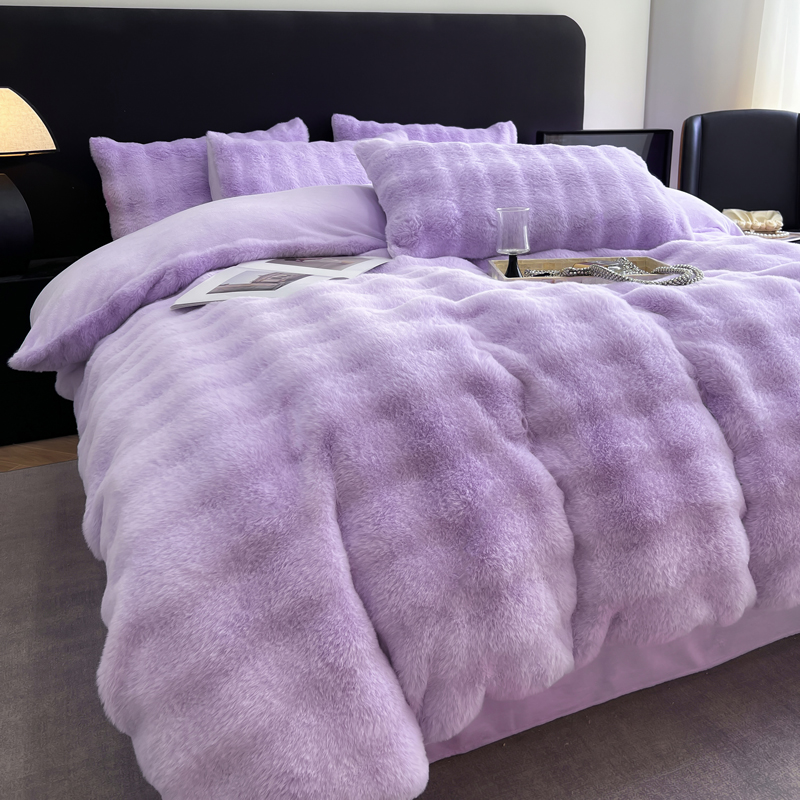 商品名称:仟网汇 2023新款大兔毛毛绒四件套 大泡泡-紫色