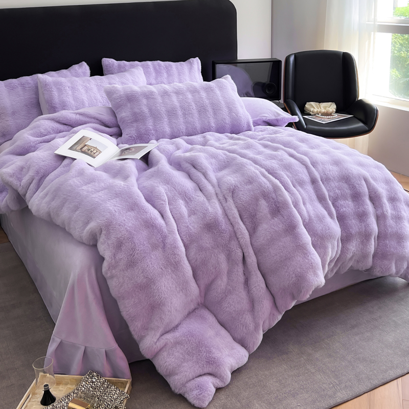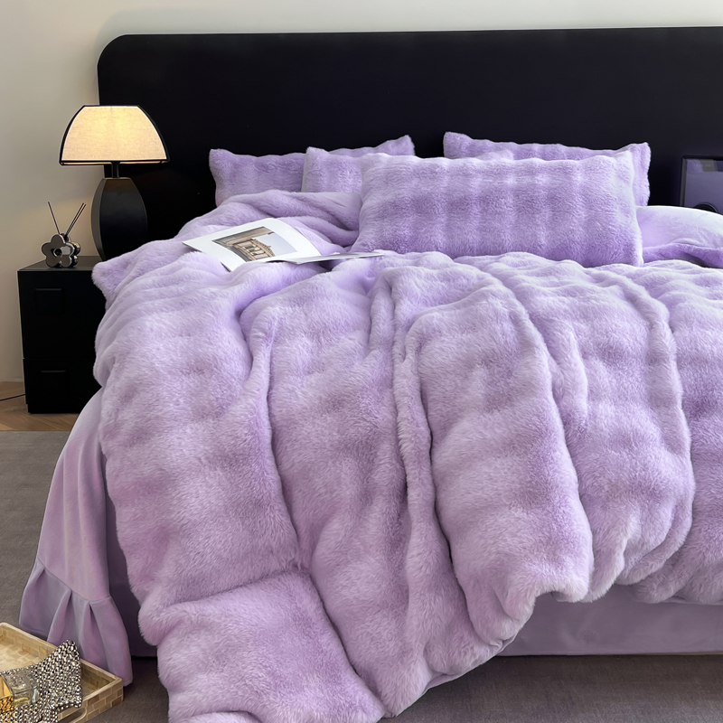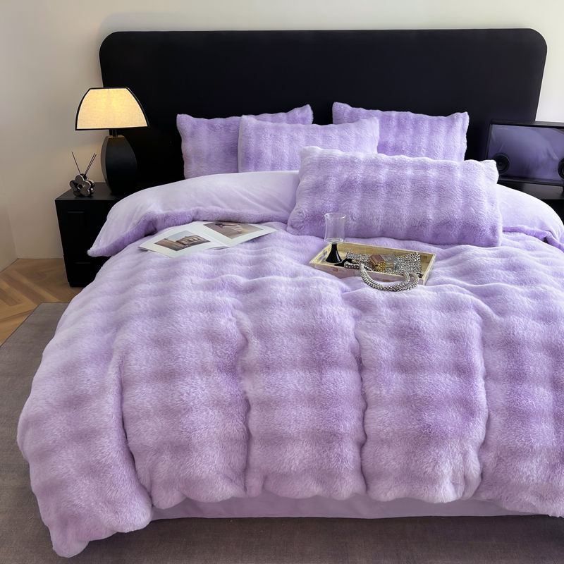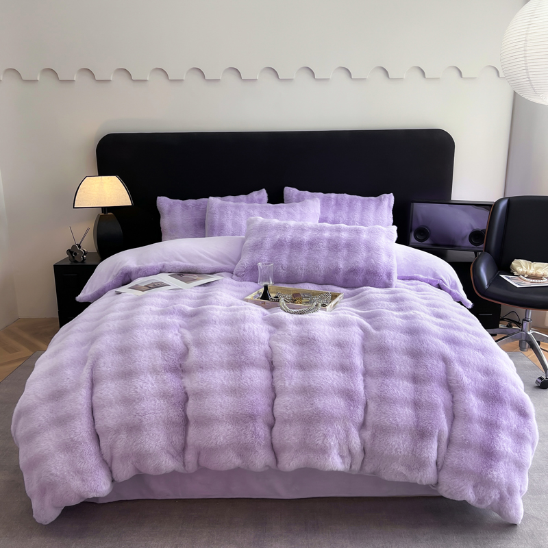 仟网汇 2023新款大兔毛毛绒四件套 大泡泡-紫色
