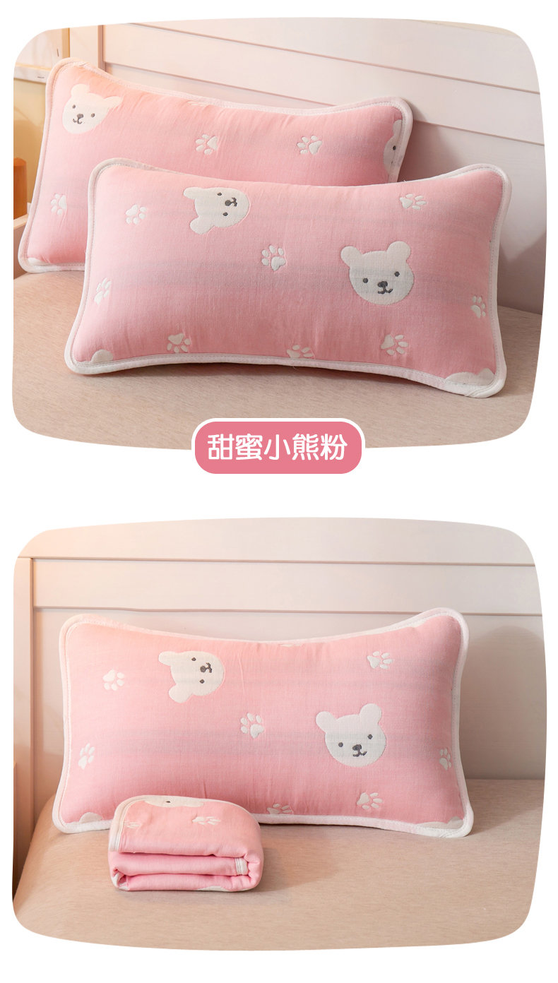 当前位置: 91家纺网 > 商品网购 > 床上用品 > 枕套 > 2023全棉卡通六层纱布儿童枕套-朴尔 甜蜜小熊粉-纱布枕套