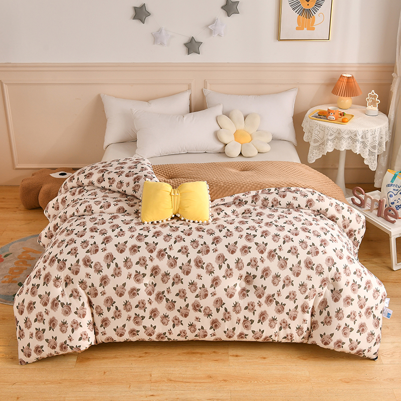 商品名称:牛魔王家居 2023新款A类针织棉豆豆被子抗菌纤维被芯冬被 复古玫瑰