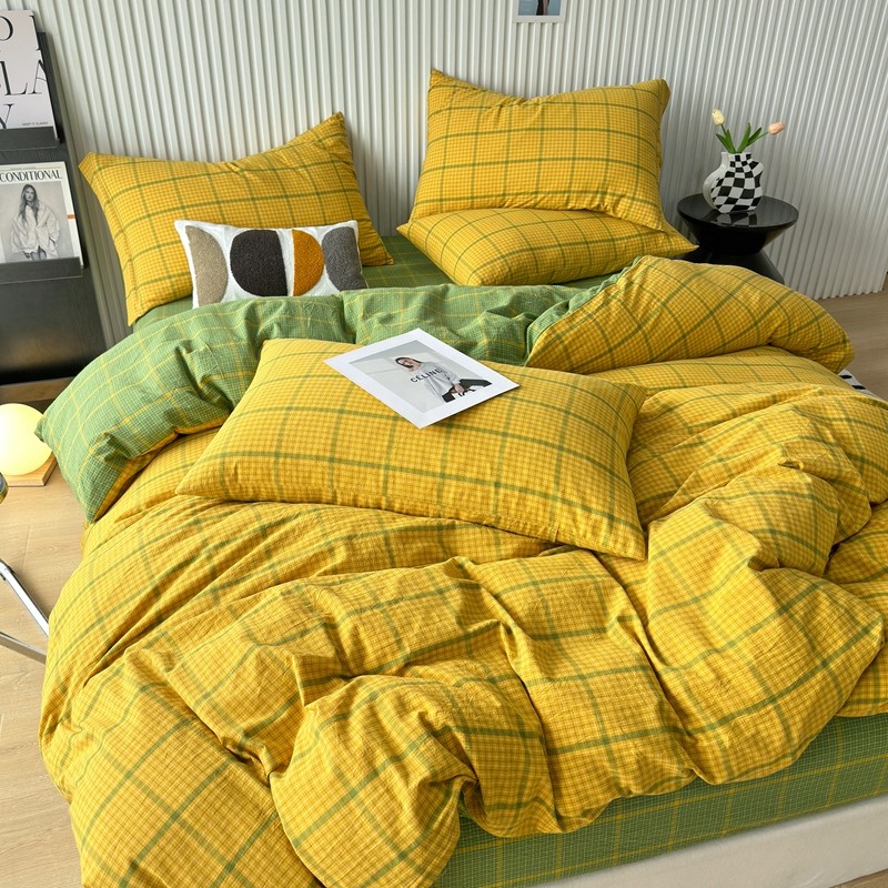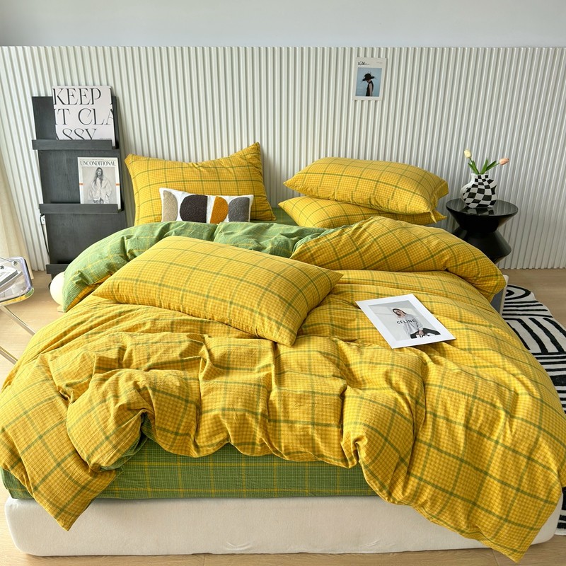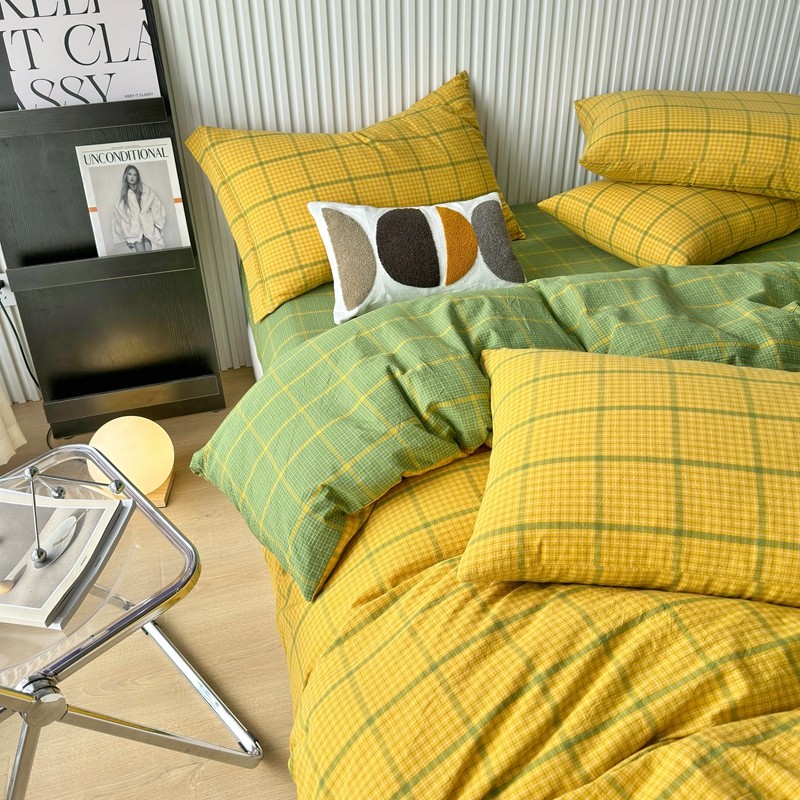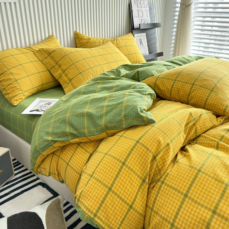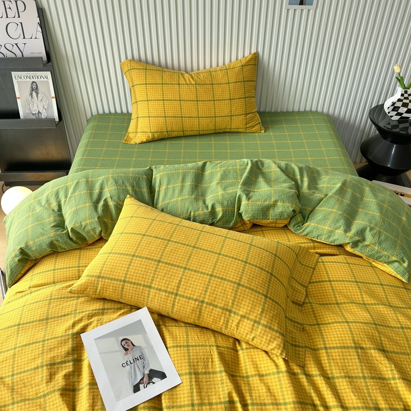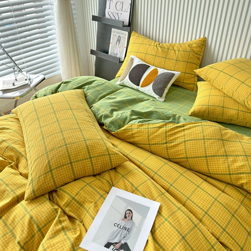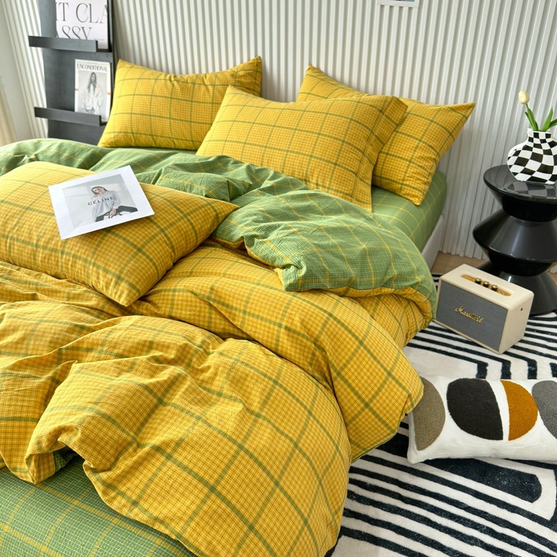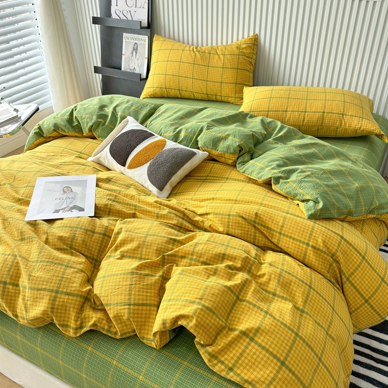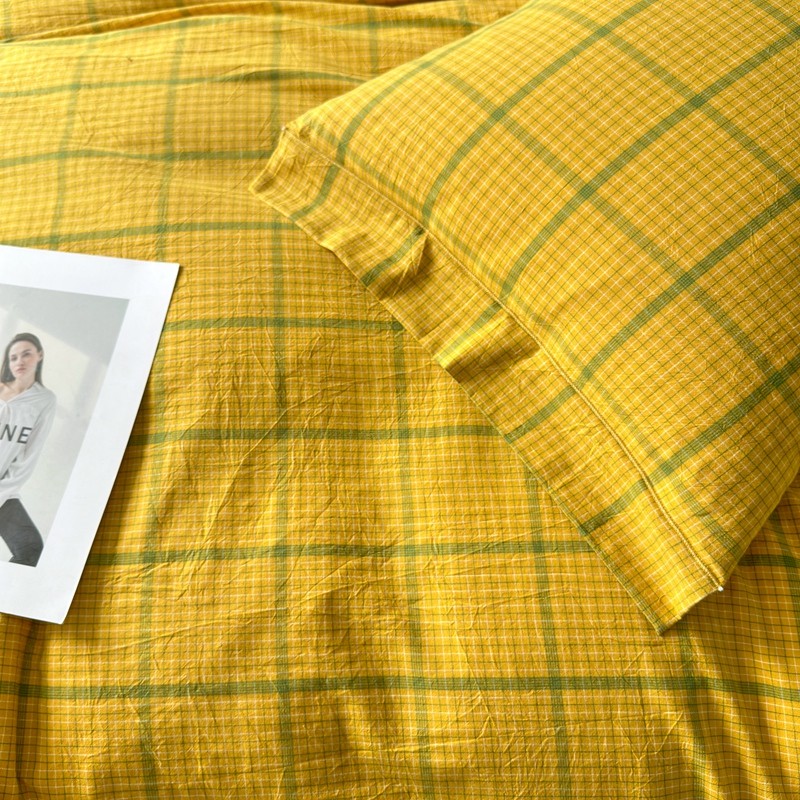 当前位置: 91家纺网 > 商品网购 > 床品套件 > 四件套 > 全棉普通四件套 > 价格下调三沁纯棉全棉色织水洗棉简约格子式四件套床单圆角荷叶边偶遇-黄绿